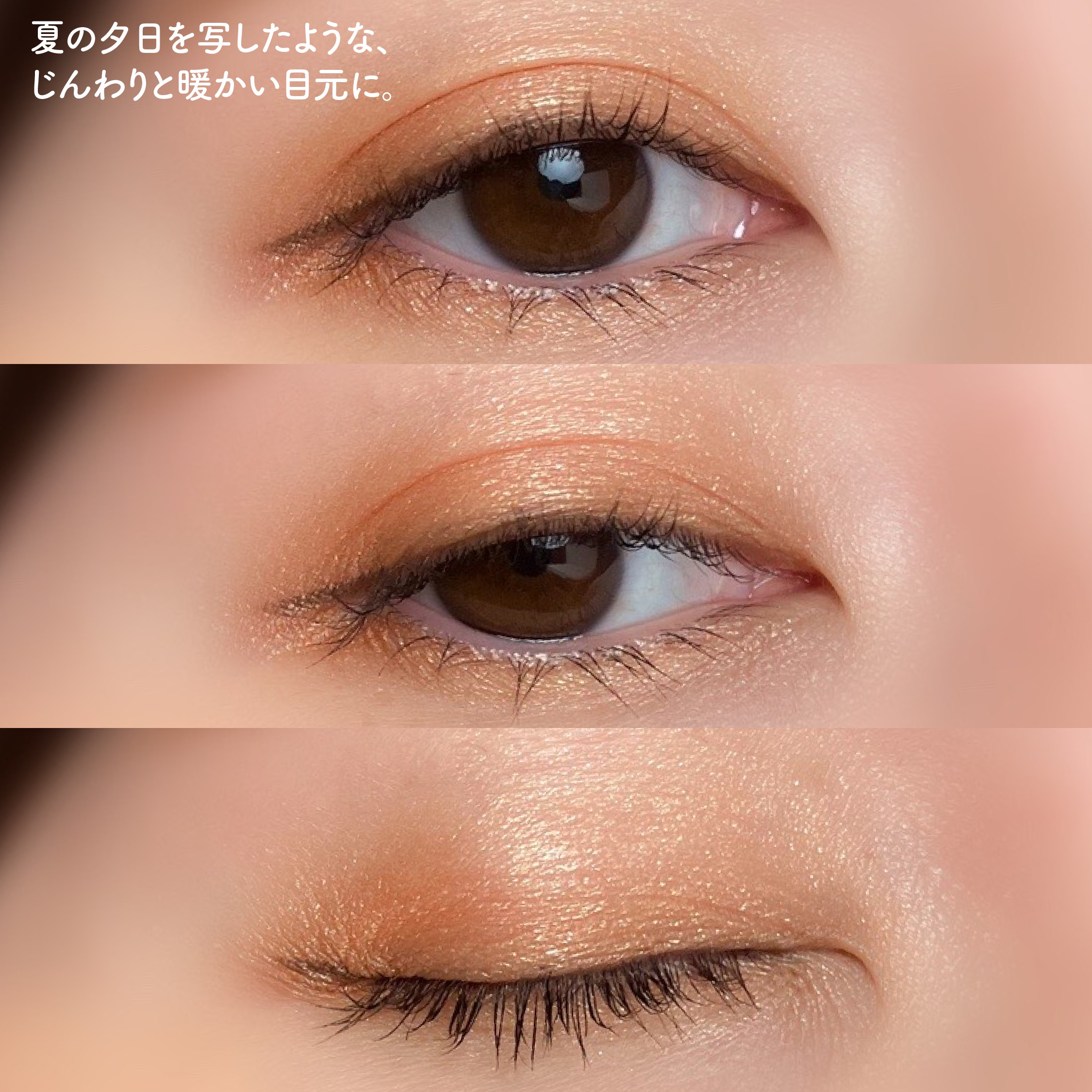 上品に透けるツヤで立体感を演出するシャドウ。 イエベさんにぴったりな夏色シャドウです。 じんわり夕日みたいなオレンジ色がヘルシーすぎずとっても良い🌻 濡れたような繊細なツヤが良すぎる…!うるうるな目元が簡単に作れます!