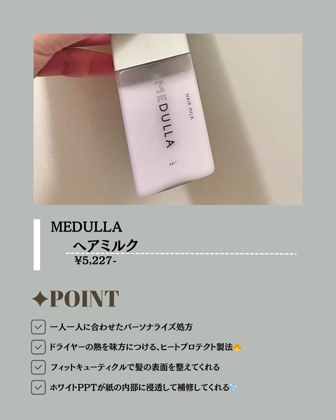 自分専用オーダーメードヘアケアがリニューアル SNSで人気のパーソナライズヘアケア「MEDULLA」。 ムスクがまるで香水のようで上品! バスルームがいい香りに○ 心地よく洗えます。 ヒートアクティブ効果でドライヤーやヘアアイロンの熱から髪を守ってくれること!