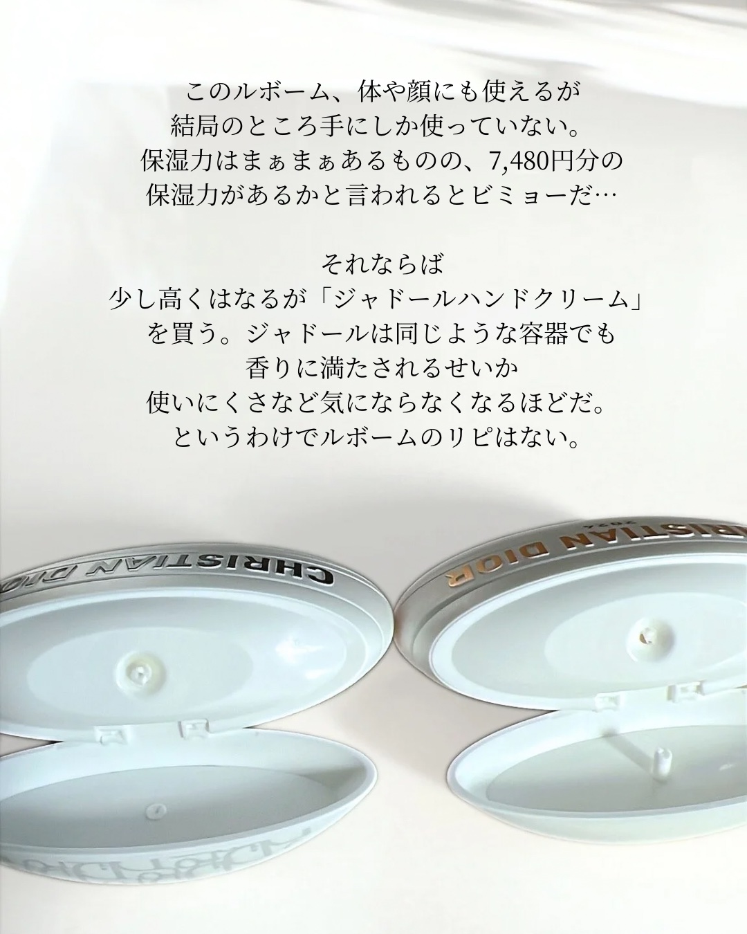 いただいておきながらすみません。去年、DIOR様よりバースデーギフトでいただいた。大変ありがたい。ルボームはずっと気になってはいたがその高級さとほぼ無臭というところに食指が動かなかった…実際手にするとめちゃ可愛い。が…#ディオール#ルボーム #ハンドクリーム#Dior#デパコス