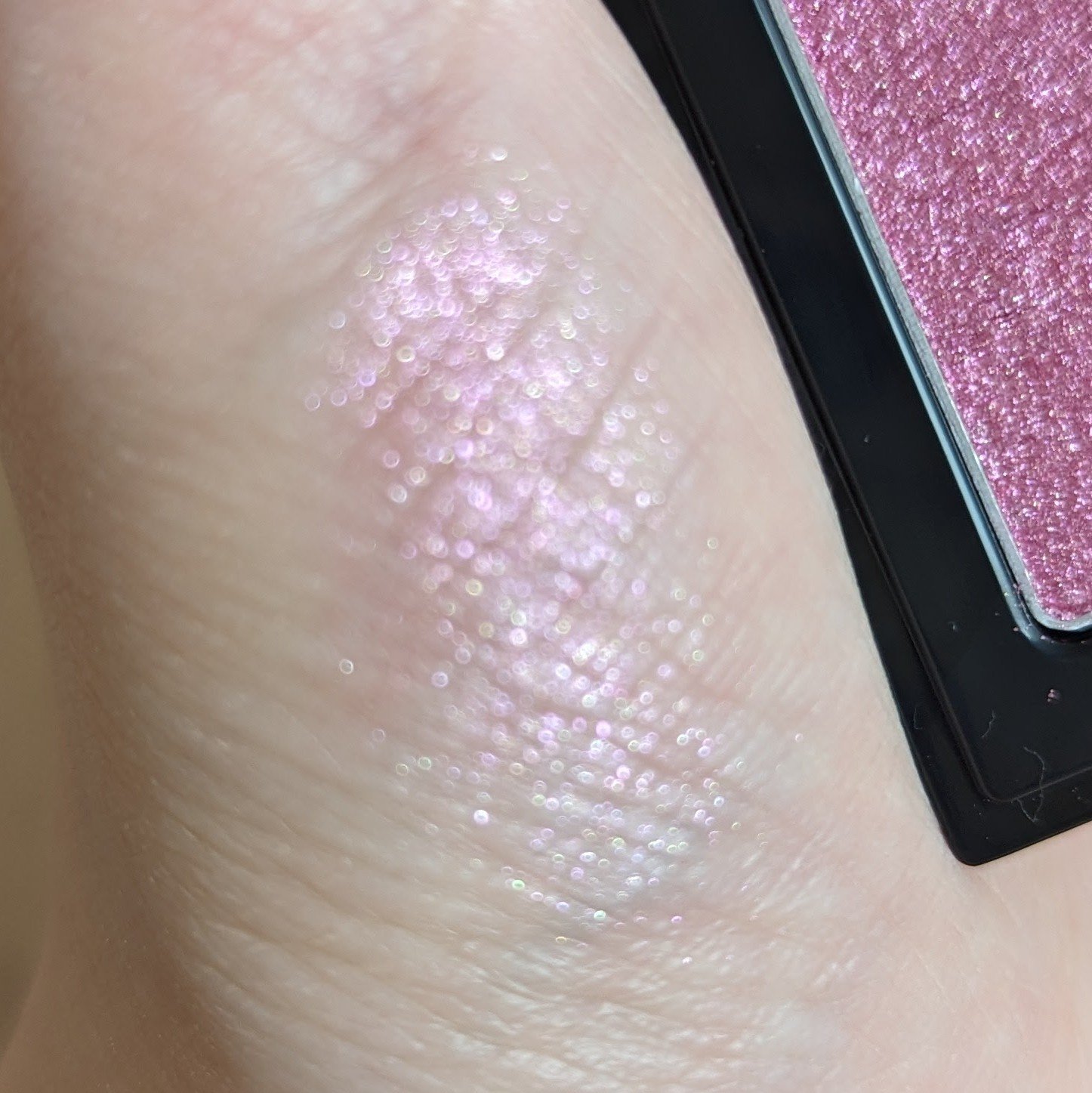 エレガンスラズルスターアイカラーS08 Crushpink粉質は硬め発色は淡いパール感がキレイ艶感にほんのり色味が乗る感じです。淡い青みピンクに多色ラメ思ったほど発色はしないので星4で。#エレガンスラズルスターアイカラー#Avatarblue...