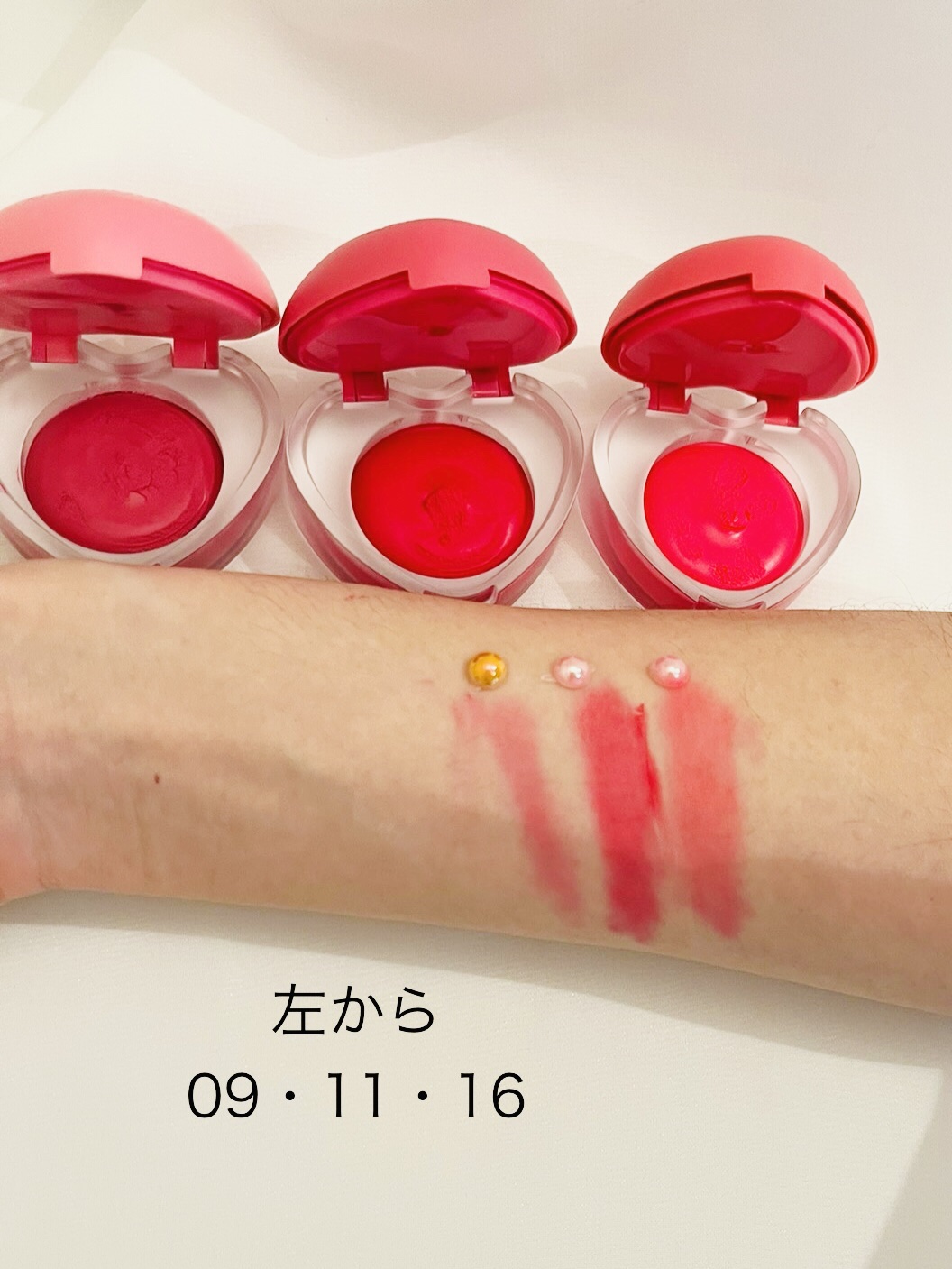 ハート型のパケが可愛すぎるデイジークの新作リップ&チーク丸みのあるブラシが付属されててこれがリップを塗るのにめっちゃ使いやすい🖌️すでにメガ割で明るいカラーをゲットしてたんだけど表参道ヒルズのポップアップで実際の色味を見たら他のカラーも欲しくなって2色ゲットしたらノベルティーがもらえたから気になった2色を追い買いした🙃それぞれの色味とおすすめの使い方を徹底レビュー✒︎購入したカラーは左から09ヘイジーロージー🌹☁️11チェリーカスタード🍒🍮16ピンクパンチ(表参道ポップアップ限定色)🩷🤛ぱっと見かなりビビッドなカラーで使いにくく感じると思うんだけど付属のブラシで少しずつ重ねてぼかすと綺麗に肌に馴染んでふわっと発色するの🫨09が一番肌なじみのいいライトピンクだから個人的にチークに使うのがおすすめ真ん中のチェリーカスタードはこの3色では一番高発色なピンクレッドで私的にはリップに使うのがおすすめ💄モノトーン系のファッションに合わせると映えそう😉16ピンクパンチは表参道ヒルズでしか買えない限定カラー🤫かなりポップなヒューしゃピンクに見えるんだけどなんとなんとスウォッチしてみるとニュートラルなピーチ系カラーに返信🪄🍑誰でも万能に使いやすそうな肌なじみカラーだからポップアップいける人はマストバイ🫸ふわっとした仕上がりも可愛いけどどうしても唇の乾燥が気になる人や艶を足したい人は“メルティングキャンディーバーム“や“フルーティーリップジャム“を中央に重ねてもポテっとした唇になって可愛いからおすすめだよ😃ポップアップは9月23日まで表参道ヒルズでやってるから気になる人は行ってみてね🫶デイジークのアイテムがいろいろ試せるしノベルティーも充実しててめっちゃ楽しかった😉気になる人はチェックしてみてね🫶#デイジーク#デイジークスフレカラーポット#スフレカラーポット09_ヘイジーローズ#スフレカラーポット11_チェリーカスタード#スフレカラーポット16_表参道限定カラー#デイジークリップ&チーク#デイジーク新作#デイジークポップアップ購入品#QOO10メガ割購入品#スフレ質感#パケ買いコスメ#韓国コスメ新作#コスメ購入品#コスメレポ#コスメレビュー#デイジーク新作レポ#新作コスメ#コスメ好きさんと繋がりたい#メイク好きさんと繋がりたい#美容好きさんと繋がりたい#Qoo10メガ割