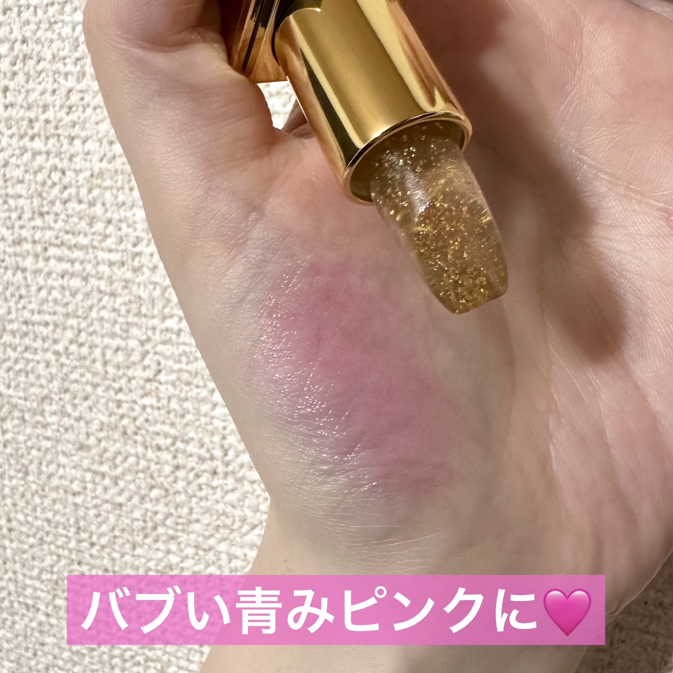 透明なリップなのにピンクになるの不思議!かわいいし高級感あるし最高✨でも、高すぎるて!!リピートはできないけど買ってよかった(^^)保湿力もあって使いやすいからおすすめ◎金箔入りで最強すぎる。 ...