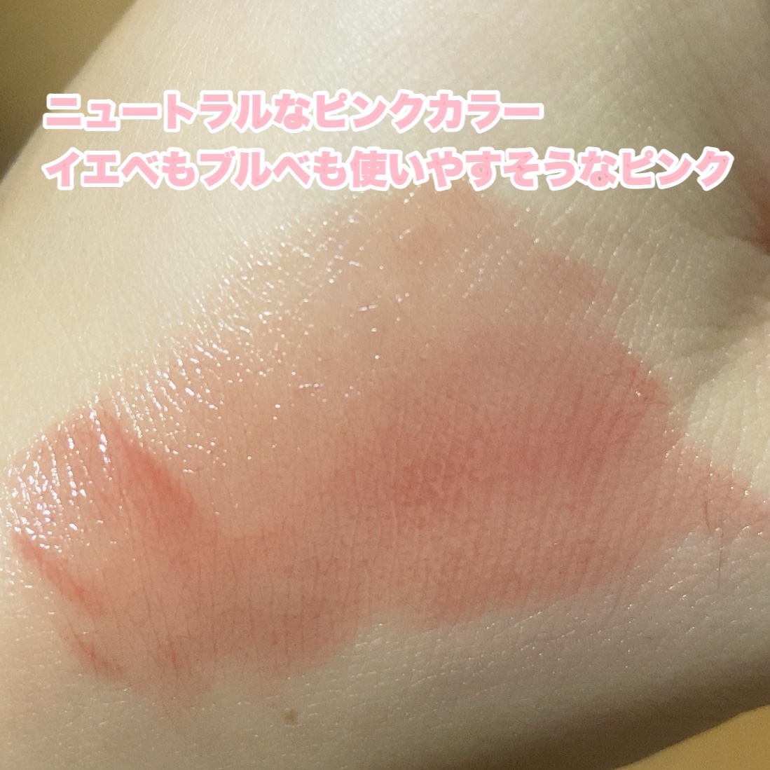 角質削除とか、塗っても負担にならないリップってすごいよね。 このリップは優しい塗り心地なのと いい意味で思ったより発色しないので自分で色味調節できるのが良い! 濃すぎるパキッと発色タイプが苦手で、 ちょっとドキドキしたんだけど3回ぐらい重ねると 見たまんまの色になるかなって感じ。