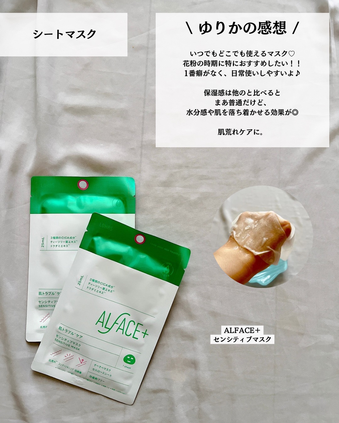 いつ、どんな時も調子がいい肌へ❤︎︎︎︎┈┈┈┈┈┈┈┈┈┈┈┈┈┈┈┈┈┈┈❤︎ALFACE+センシティブマスク¥275❤︎︎︎︎┈┈┈┈┈┈┈┈┈┈┈┈┈┈┈┈┈┈┈❤︎CICA成分*1やドクダミエキス*2配合の美容液がうるおいのヴェールでお肌を優しく包み込む。ヴィーガン処方。乾燥や外的刺数によって荒れやすいお肌をケアし、肌コンディションに自信を与えます。*1ツポクサエキス、ツポクサ水、マデカッソシド(すべて整肌成分)*2保湿成分#ゆらぎ肌のスキンケア#毛穴ケア#透明感#マスク