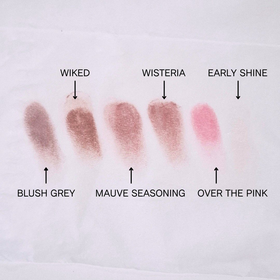 HOLIKA HOLIKAのマイフェイブピースアイシャドウが10個で3,520円の大特価!!こんなの買うしかない!! ウィステリア くすみピンクで締め色としてもメインカラーとしても使える優れもの! ブラッシュグレー 青みに振り切ったグレー!少しブラウンみもあるのでブルベのブラウンとして使えるグレージュカラー!