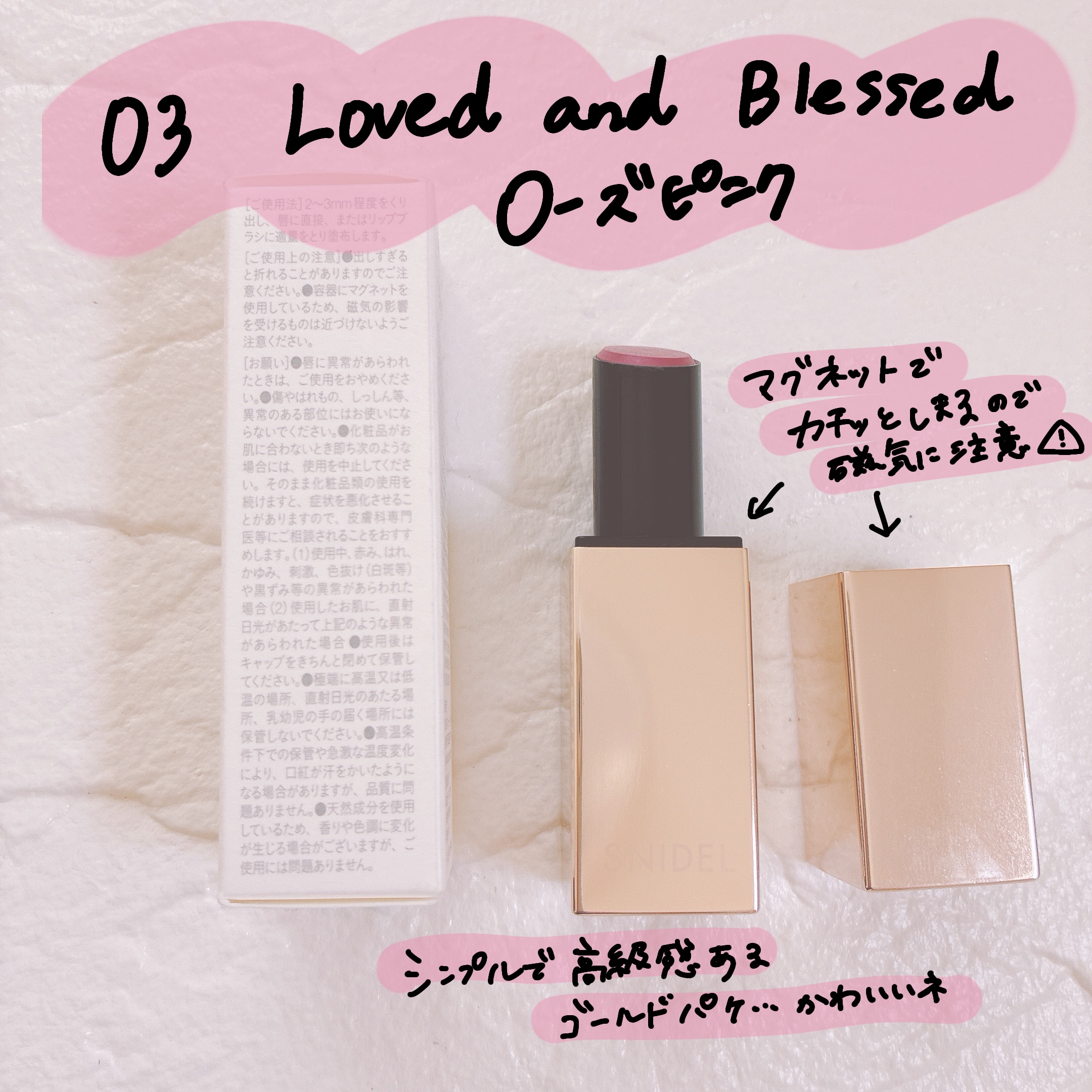 お盆何処にも出掛けなかったので好きなコスメ買うしか無いとなりまして❣️スナイデルはフェイススタイリストを持っているのですが、ラメが本当に可愛くて♡今回はリップとライナー初購入してみました!✧ルージュスナイデルn03LovedandBlessed唇の乾燥と縦皺が悩みなのですが、これはそれをカバーしてくれて☺️スルスルぬれるし、色味も可愛くて!只色持ちはイマイチなので食事後は塗り直し必須です。保湿力>モチなリップです💄✧SNIDELスパークルライナーEX01FrostedPink筆に腰があって凄く描きやすいライナーです。力加減で細くも太くも出来、肌馴染みも良くて☺️濃いメイクが好きな方には合わないのですが、ラメが入っているので二重ラインや目元にワンポイントとして使用すると可愛くなりかと♡✧SNIDELBEAUTYアイデザイナーnEX02SoftMuse自称イエベですがこういう可愛い淡いピンクを使ってみたくて…!発色は薄いですがラメが主役のアイシャドウかなと🥰6色あるので色々組み合わせてメイクしていますが、パープルのラメが旬な感じで目元のくすみも飛ばしてくれて大好きです!後パケが最高に可愛い。ありがとうございます。