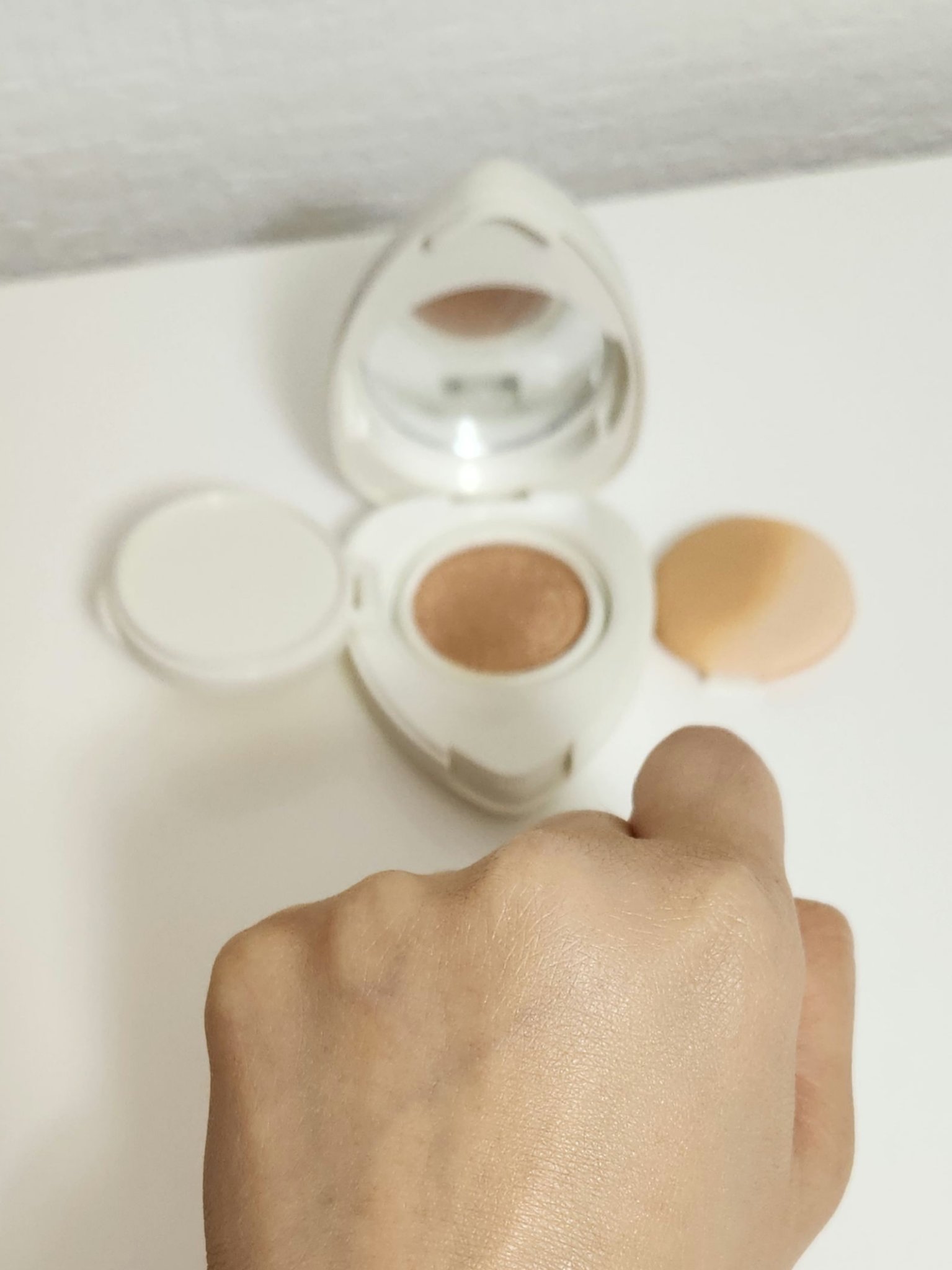 サラッとした仕上がりなのにカバー力が高い つけてから80時間メイクが持続(韓国で実施) フィッシングパウダーが汗や皮脂による崩れを防止 種類のヒアルロン酸配合で保湿もバッチリ 可愛いハートケース サラッとして塗りやすいです。ベージュ色ですが明るめ?のベージュっぽいので確認が必要かもしれません。完全なマットというわけではありませんがツヤの残る肌に仕上がりました。マスクをしても付着することはほとんどありません。私のような皮脂による崩れが気になる人にオススメしたいクッションファンデーションです。個人的に思う事はケースは可愛いのですがちょっと大きめで小さめのポーチに入りにくいです。 皮脂性さんやマットクッションファンデーションをお探しの人、参考にどうぞ❗❗