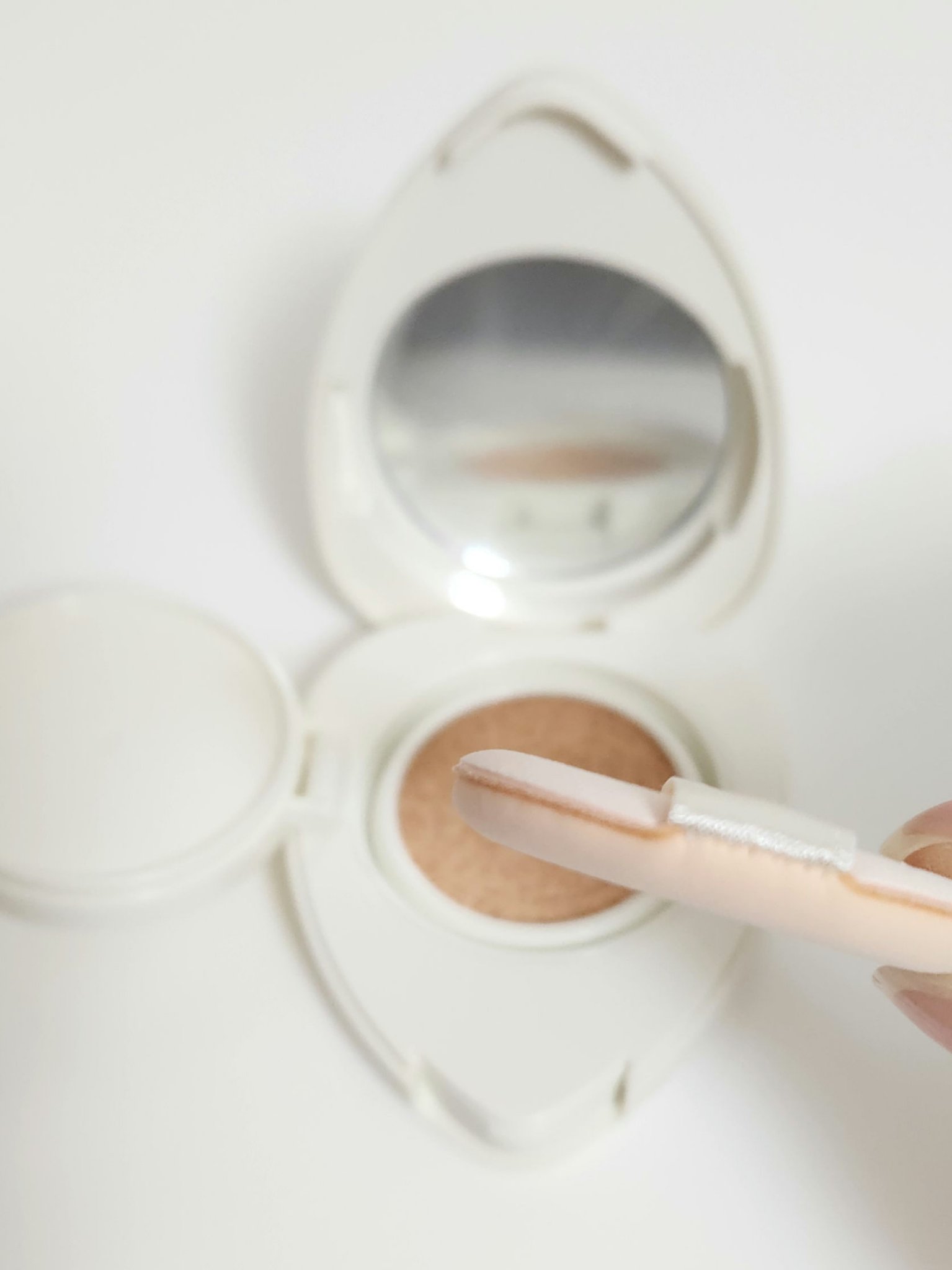 ベースメイクがこれだけで完結するとのことで、実際試してみると、毛穴、くすみの色ムラがしっかりカバーされて、フィルターをかけたように肌がトーンアップ。 マットタイプだけど、ナチュラルなツヤ感が。 そしてマットだけど、とってもしっとりしてるのにサラッと。 80時間リミットクッションファンデといって、保湿力が持続するそう。・・・すごい!