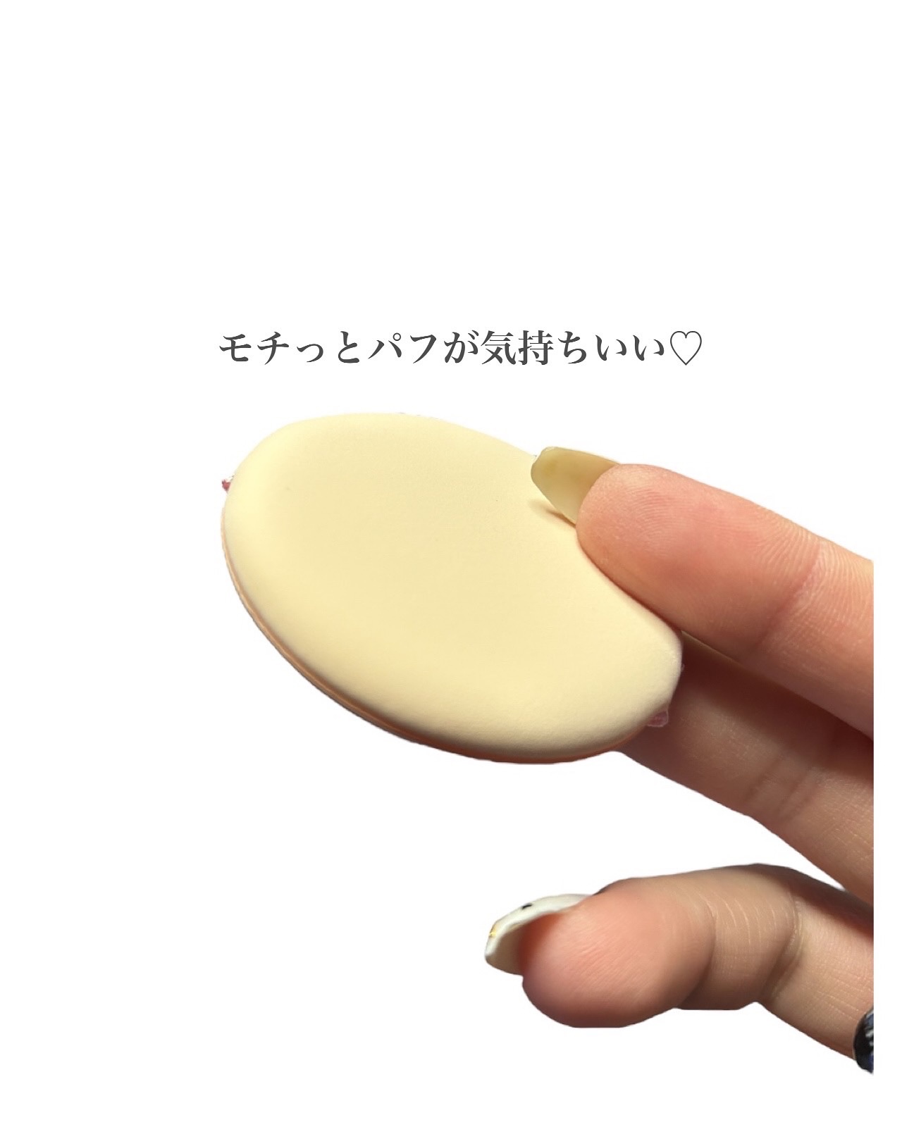 メッシュだから均一に取りやすくて ムラにならずに塗れるのがいいな!って思った✨ ただ個人的には「塗ってます」感がある🥺 薄く塗ったつもりでも厚塗り感が出ちゃうから、 ナチュラルが好きな人は向いてないかも👉👈 逆に言うと カバー力が結構あるし、 伸びもすごくいいからしっかりメイクする人には おすすめできるかな👍❤️ あとしっとり感があってわたしは好き🩵 フィクシングカバーパウダーが配合されてるから 長時間でも崩れにくいのも嬉しいね✌️ 17 アイボリーは 色白さんにおすすめのカラー 黄色味がなくてよかったです🤍
