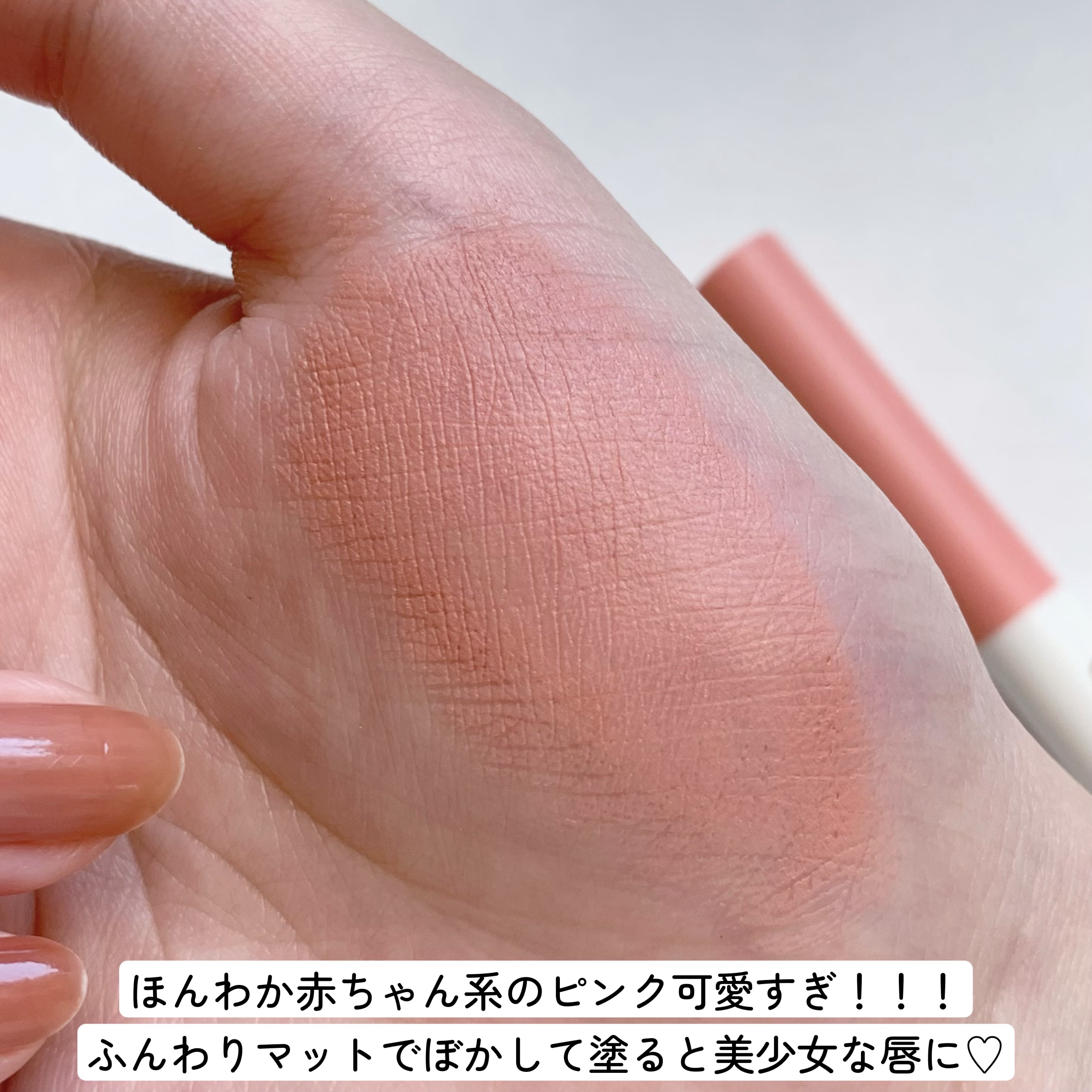 赤ちゃんピンクっていう感じのほんわかピンクがめちゃくちゃ可愛い〜!!! 美少女のような唇になれます🥰 細めのリップペンシルで塗りやすく、微調整もしやすいのでリップライナー感覚でオーバーリップしたりして使うのにもいいです!! ソフトなマットでぼける感じのテクスチャーも可愛いです💕