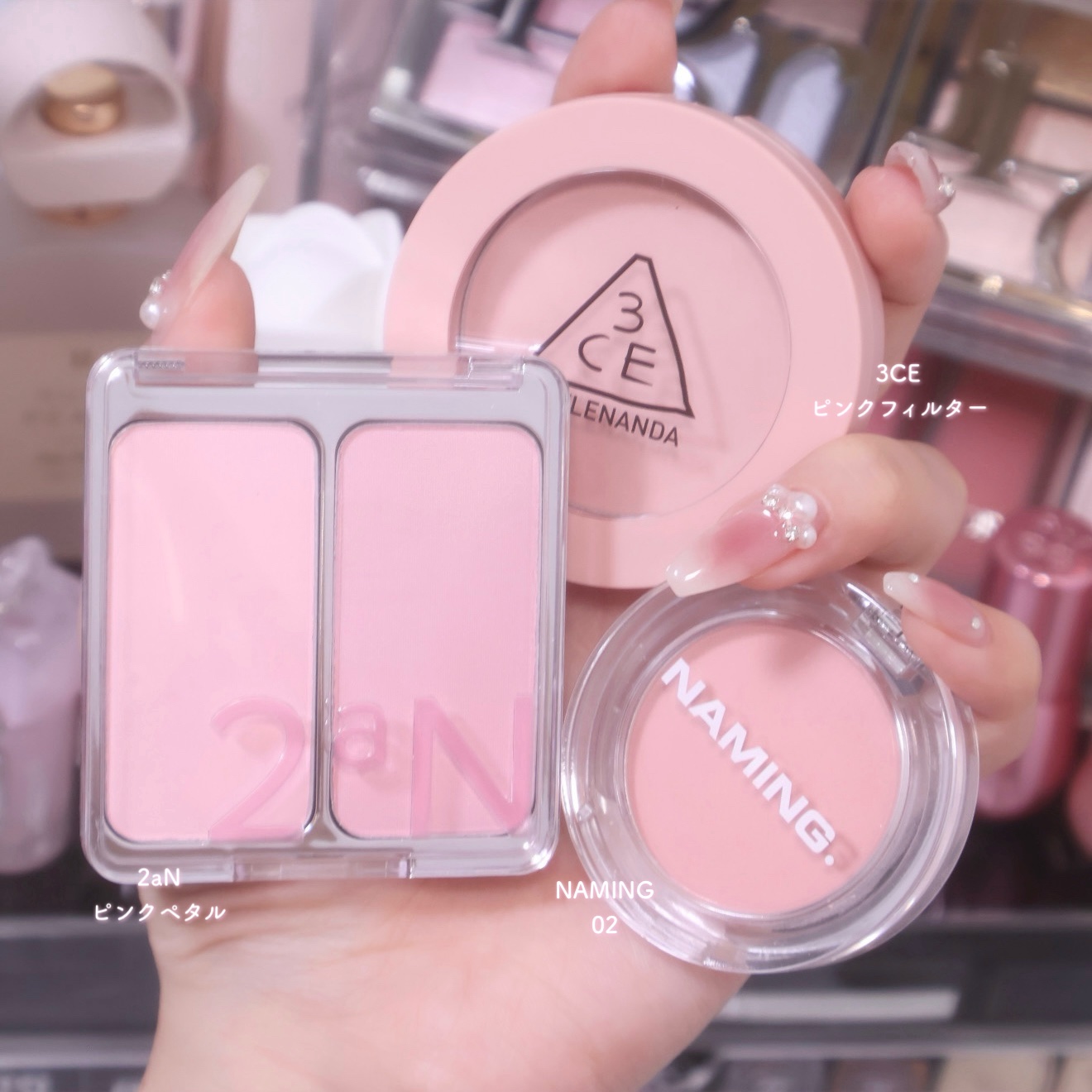 \NAMING.のパウダーチークから日本限定カラーが登場🍑💕/⚜️NAMING.ネーミングフラッフィーパウダーブラッシュ01/02/03TWICEのナヨンちゃんも使用していた03のピーチピンクはPC問わず使いやすい華やかなピンクカラーで本当に...