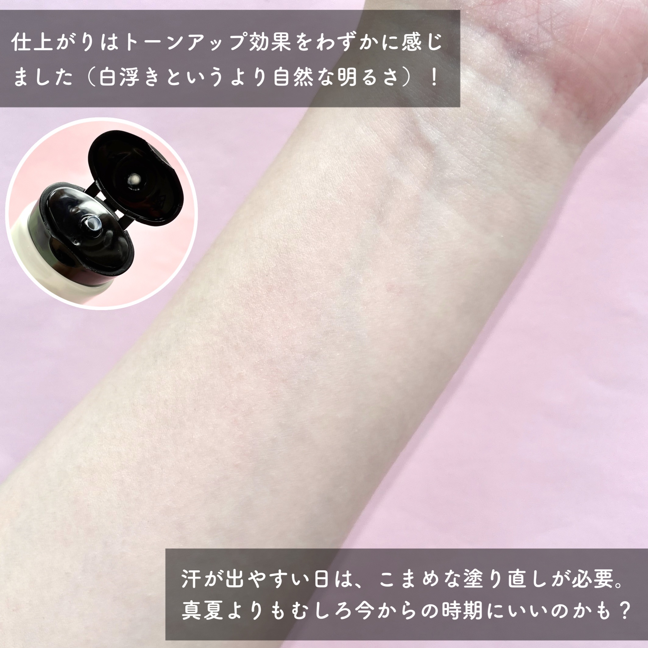 うるおいと輝きのあるツヤ肌が実現する成分を配合 オレンジの香りが凄く爽やかで塗っていて幸せな気持ちになります! 敏感肌ですが、大丈夫でした! 最近日焼け止めの善し悪しが話題ですが、問題になっている成分も入っていないですし、石鹸off出来るのも嬉しいポイントです🧼