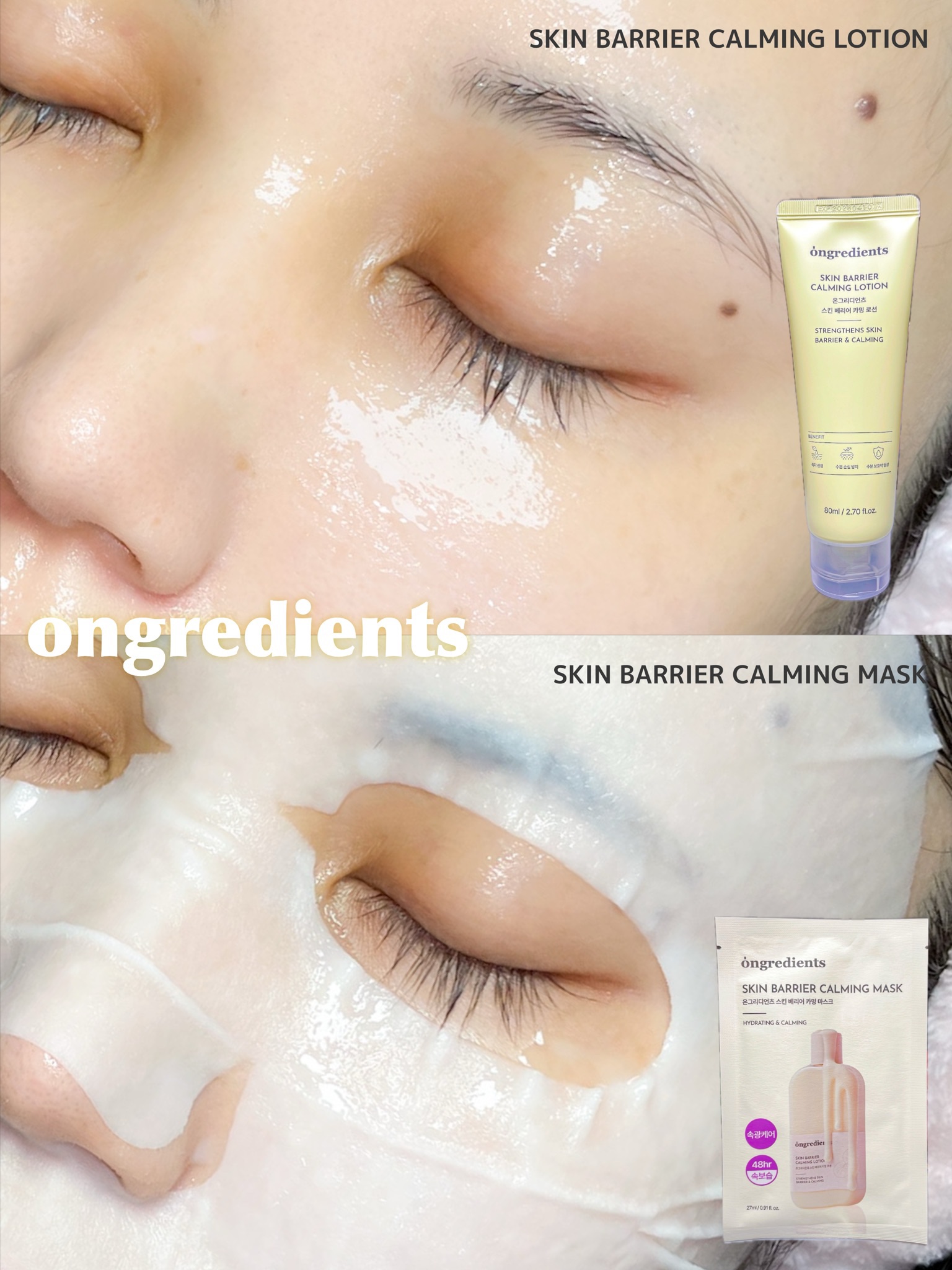 \韓国メイクサロンでも大人気✨/【Ongredients(オングリディエンツ)】🌿スキンバリアカーミングローション(乳液)🌿スキンバリアカーミングマスク(シートマスク)💧スキンバリアカーミングローション韓国のメイクサロンで愛用されてる乳液✨メイク前の水分チャージにぴったりで、しっとりするのにベタつかないから下地やファンデのノリもアップ💄チューブタイプで衛生的だし、出しやすくて使いやすいのもお気に入り♡💆♀️スキンバリアカーミングマスク同じシリーズのシートマスクは、メイク前の保湿ケアにもOKだけど…私は夜じっくり使ったら、翌朝までしっとりモチモチ肌に♡密着感が高いシートで、美容液がぐんぐん入っていく感じが心地いい〜✨敏感肌にも優しい処方で、鎮静&保湿ケアを両立。「メイク前の水分補給」から「夜のご褒美ケア」まで、シーンで使い分けできるのが推しポイント🌸#PR#Ongredients#オングリディエンツ#スキンバリアカーミングローション#スキンバリアカーミングマスク#韓国コスメ#水分チャージ#敏感肌ケア#モチモチ肌