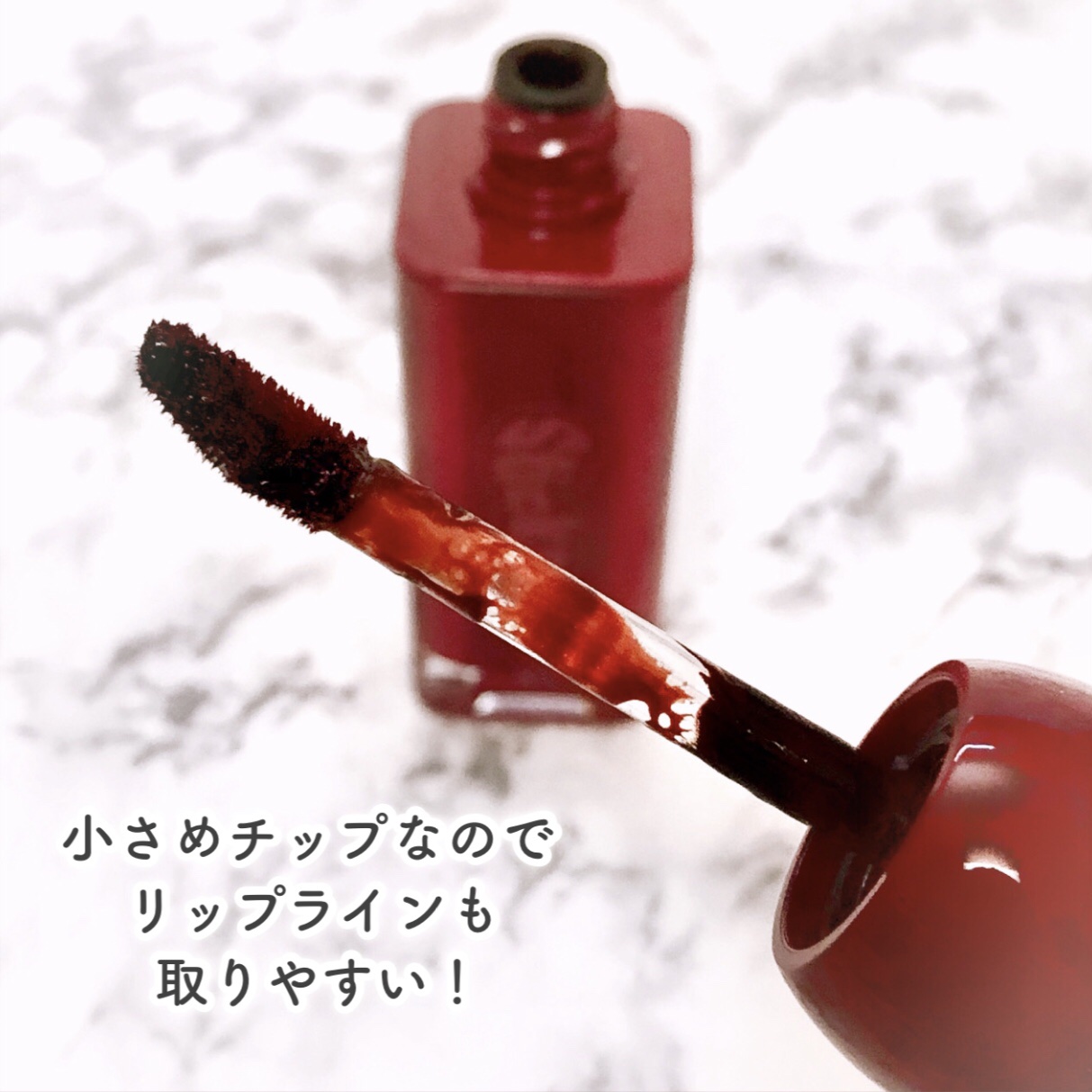 まるでタトゥーのように唇にピッタリ密着するから重ね塗り不要 朝塗った鮮やかな発色が夕方まで持続 このティント、特徴通りほんとタトゥーみたいに密着するからまぁー取れない✋