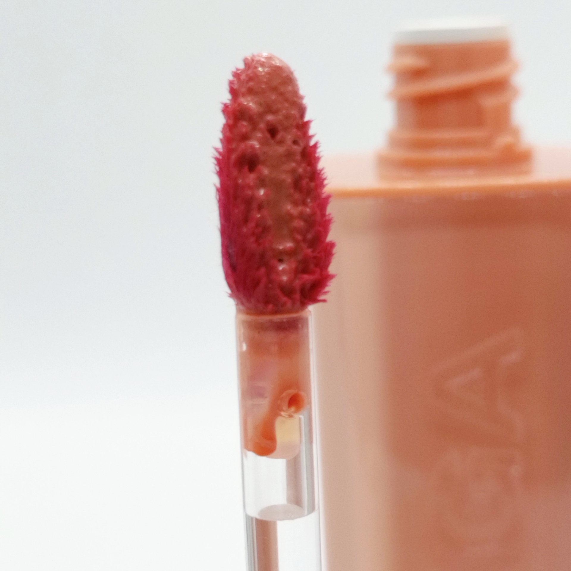 ウォーター×オイルシグネチャー配合 ぷるんとした唇を演出する水滴型のアプリケーター 中央のホールが内容物をたっぷり含んで水光でぷるぷるリップ演出 出したては、白さがあるオレンジベージュカラーで塗った後暫く経つと赤みが出て、白みは落ち着きます むっちりして、ぷるぷる仕上がりです。上下んまんましても、全然ベタつかなかったです。