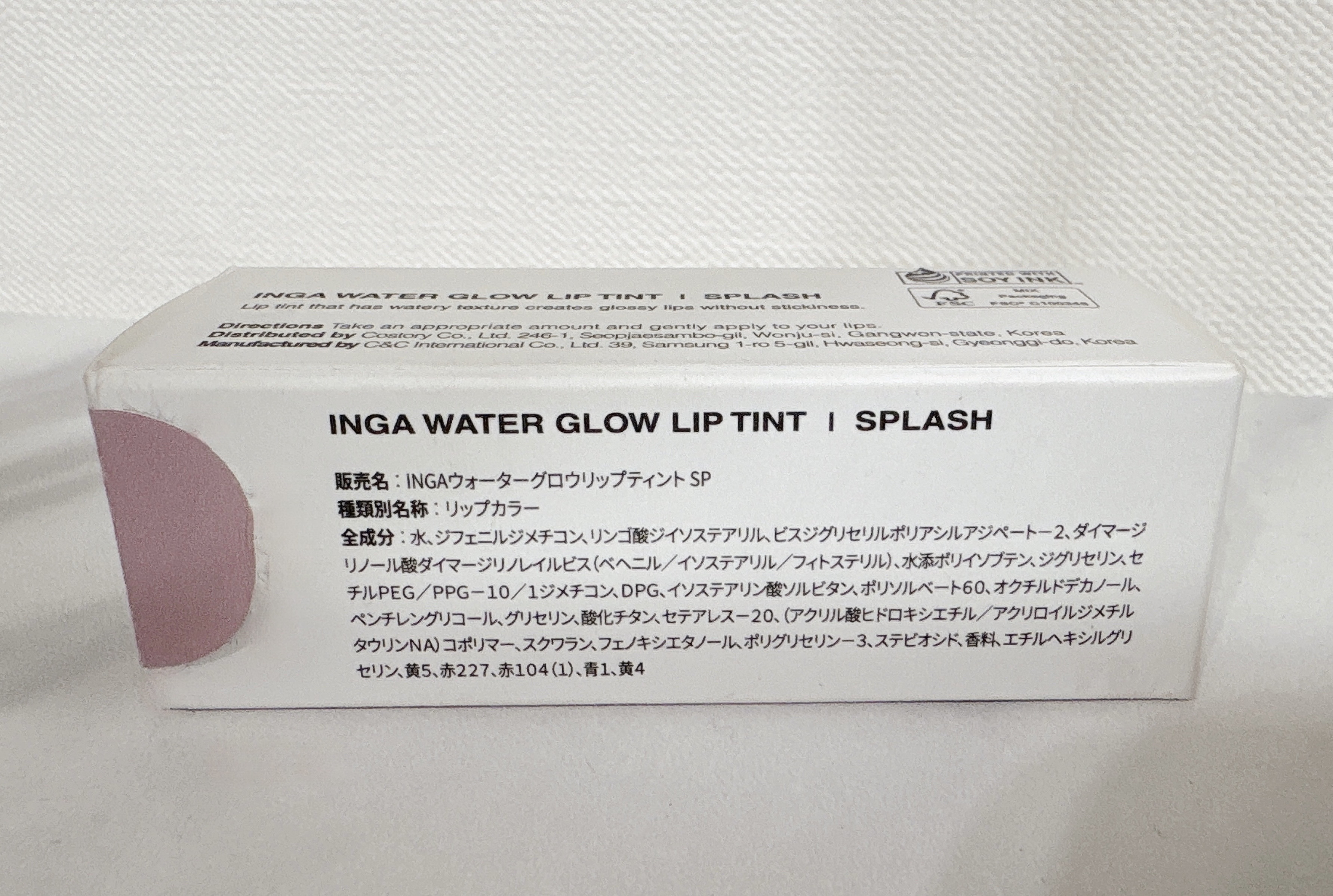 ハンズでコスメぶらぶら見てた時に見つけたやつ!!INGAインガ ウォーターグローリップティント カラーが「スプラッシュ」というカラー。店頭だと¥1815(税込)でしたが、Qoo10とか通販だともっと安く買えます。ブルベの私にはどどどドストライ...