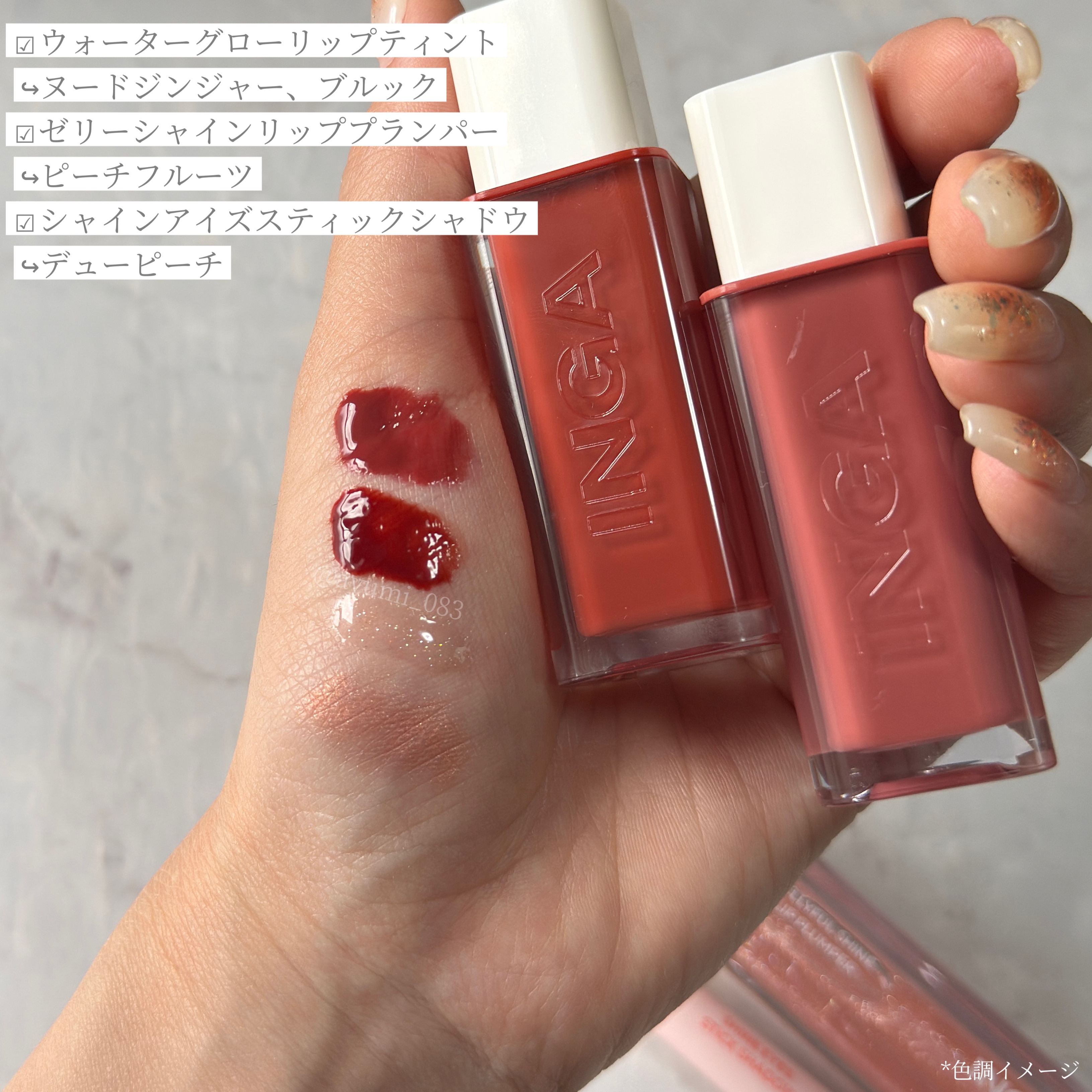 INGA イエベセット【ウォーターグローリップティント】NUDEGINGER/BROOKINGAの大人気ティントリップ❤️発色がきれいで、色残りがしっかりとした落ちにくいぷるぷるつやつやの水光ティントだよ✨イエベ、ブルべ、ニュートラルと誰にでも似合う色が見つかる幅広いカラー展開が嬉しいポイント🥰重ね塗りすると更に可愛くなってカラー展開は無限大🫶しっかり色残りするとこが好き💗【ゼリーシャインリッププランパー】PeachFruitsウォーターグローリップティントとゼリーシャインリッププランパーの重ね付けでもっとかわいいくぷるぷるリップに💓細かいラメがたっぷりと詰まってチラチラ輝くのがとっても可愛い✨刺激が強すぎないから使いやすいし透明、イエベ、ブルべと使える3色展開なのも嬉しいポイント💡【シャインアイズスティックシャドウ】DuePeachスティックタイプで使いやすくてポイントにもベースにも使えるカラーとラメ感がたまらない💓涙袋メイクにも使いやすくて密着感が高くて落ちにくいのが◎!パーソナルカラーで選べるブルベセットとイエベセットがあるから似合う色を簡単に見つけられちゃう💗落ちにくいぷるぷるリップが特にお気に入りだよ✨@inga_jp#PR#Qoo10#メガポ#韓国コスメ#INGA#インガ#プチプラコスメ#ティントリップ