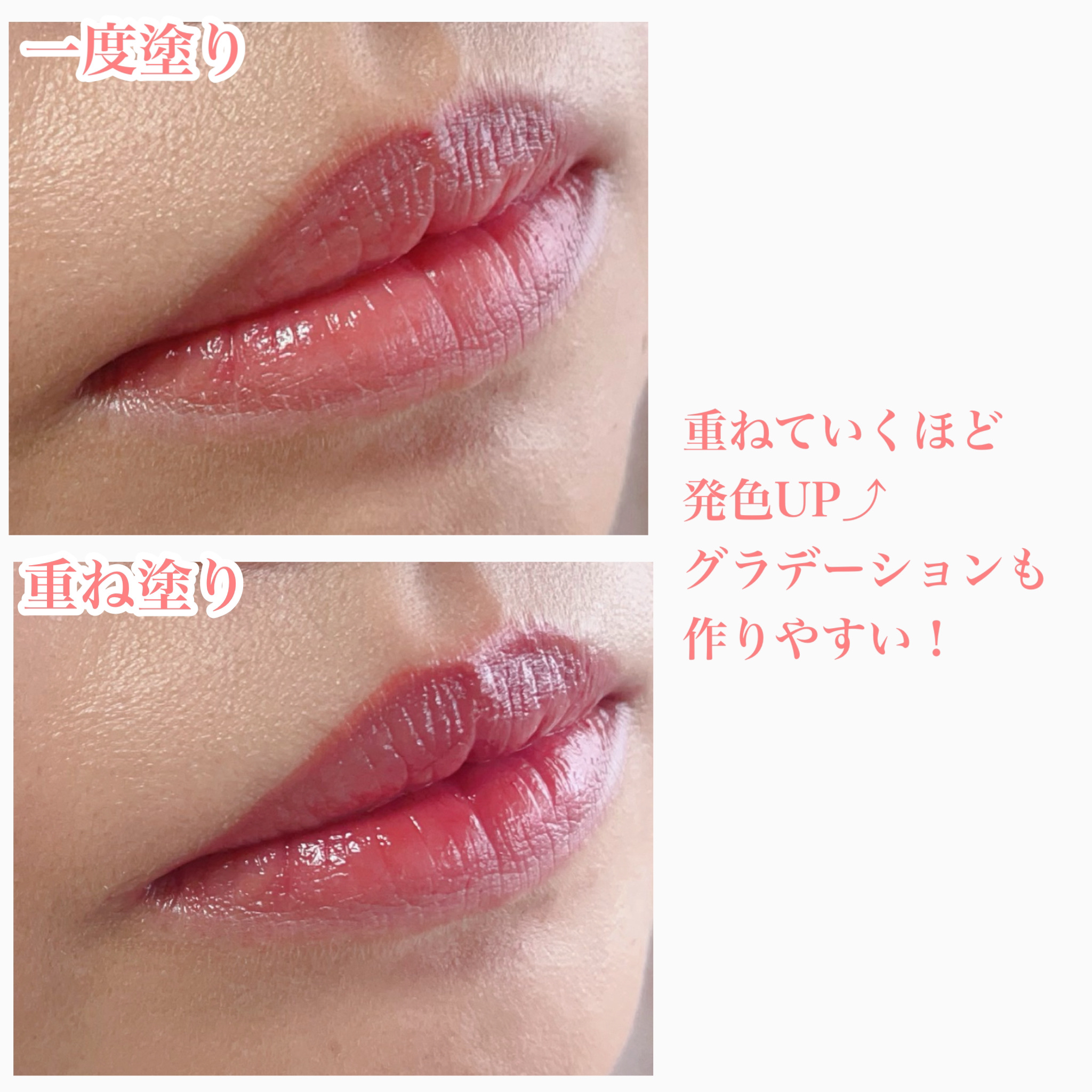 リップ、アイ、チークメイクが完成しちゃいます♡ 統一感のあるメイクができて嬉しい◎ 水々しくてちゅるんとした仕上がり🫧 塗り重ねると濃くなっていくので好みの濃さに調節できます! 体温で柔らかく溶けるので、道具を使わずに手だけで綺麗に塗れるのも嬉しい✨