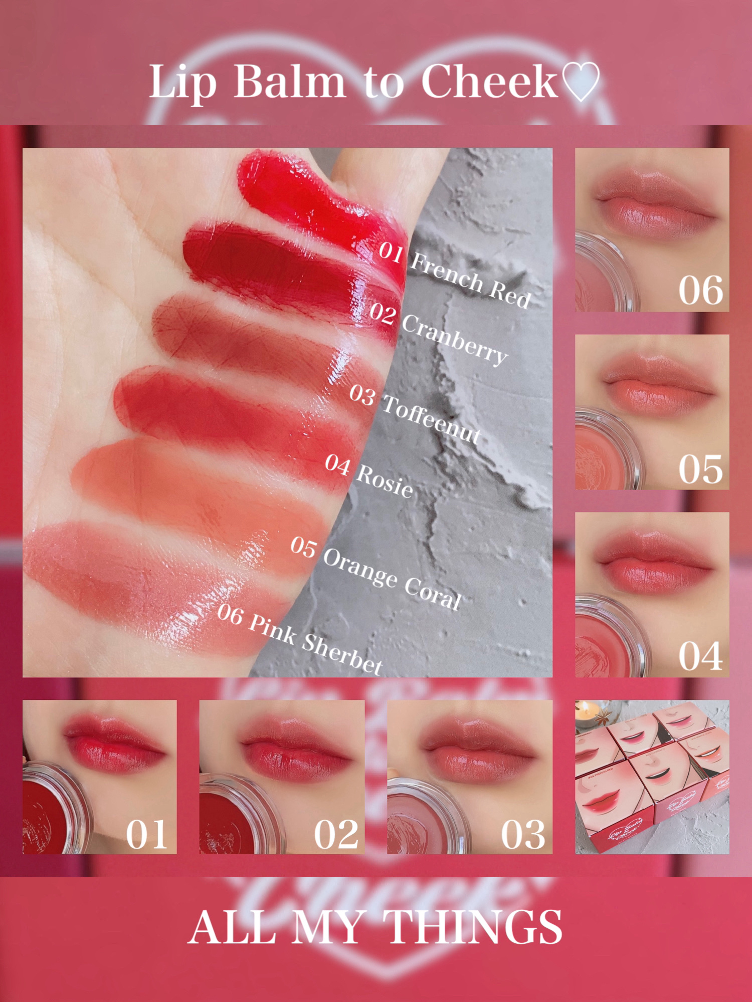 @allmythings_jpさんのトゥルービューティーリップバームトゥーチーク01.FRENCHRED02.CRANBERRY03.TOFFEENUT04.ROSIE05.ORANGECORAL06.PINKSHERBET✼••┈┈••✼•...