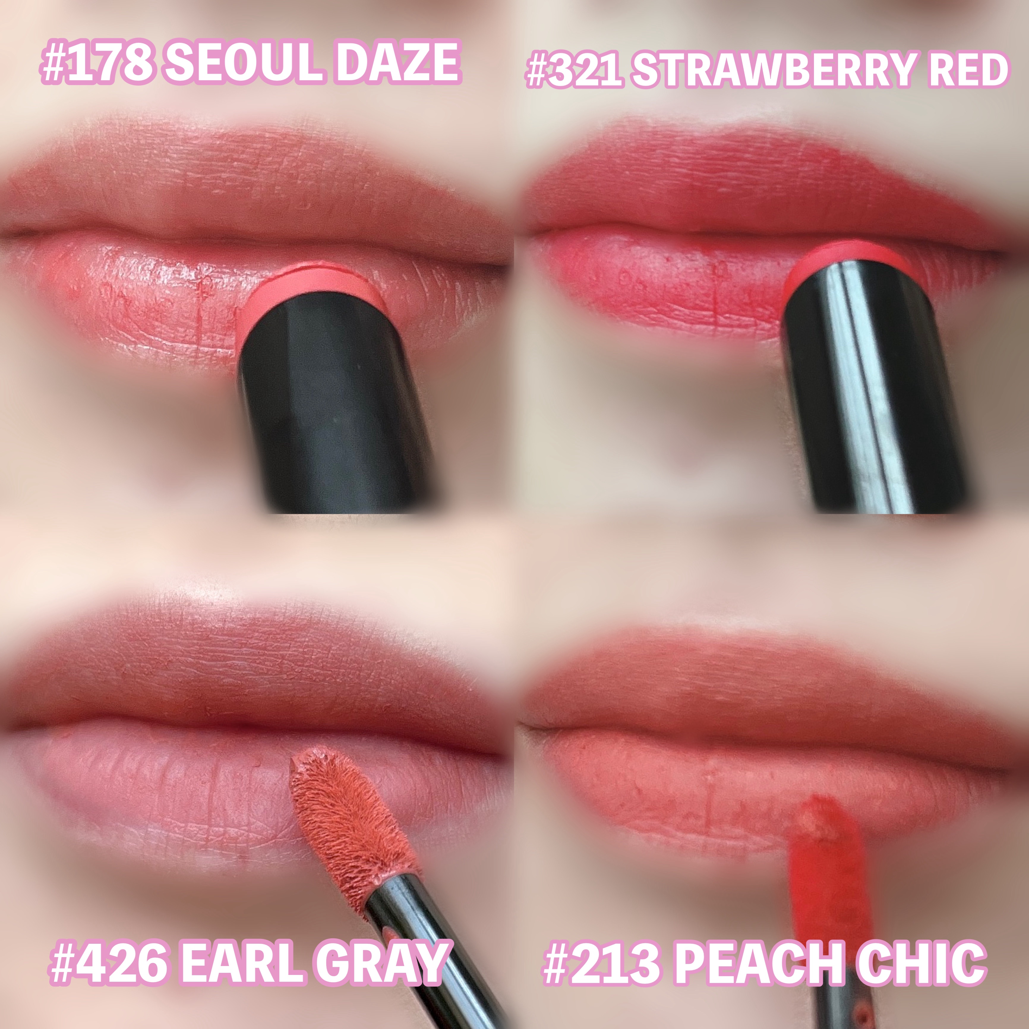 \HERAマット新色レビュー✨/HERAのしっとりマットリップに新色でたよ〜!このシリーズほんとに大好き💕もしかしたらわたしのマットリップ好きはHERAから始まったといっても過言ではないかも😮💨✨そのくらいしっとり軽やかで付け心地のいいリップです。では4色それぞれのレビューいくね〜🌟#178SEOULDAZE‾‾‾‾‾‾‾‾‾‾‾‾‾‾‾‾‾‾‾‾‾‾‾‾‾‾‾‾‾‾‾‾‾‾可憐という表現がぴったりのピンクコーラル!既存色#159CUDDLEからくすみを抜いて少しだけピンクに寄せたような色。#321STRAWBERRYRED‾‾‾‾‾‾‾‾‾‾‾‾‾‾‾‾‾‾‾‾‾‾‾‾‾‾‾‾‾‾‾‾‾‾ウォームトーン、クールトーン、どちらにも似合うよう調整されたピュアレッド。グリグリ塗るとしっかりカラーになっちゃうので優しくぽんぽん塗りすると写真のようになるよ。直塗りか筆塗りか、何度塗るかによって全然違う雰囲気。#213PEACHCHIC‾‾‾‾‾‾‾‾‾‾‾‾‾‾‾‾‾‾‾‾‾‾‾‾‾‾‾‾‾‾‾‾‾‾やわらかくて温かみを感じるピーチカラー。少しミルキー成分もはいってあどけなさもあるよ!チークとしても使ってOKなアイテムなので、ほっぺたにも薄くふんわりとぼかしてね。#426EARLGRAY‾‾‾‾‾‾‾‾‾‾‾‾‾‾‾‾‾‾‾‾‾‾‾‾‾‾‾‾‾‾‾‾‾‾既存色#435PAMPASと#127LIPMORNINGちょうど中間のような紅茶カラー。アールグレイなんていい名前だよね。今回の新色で1番ツボ!!大好き!HERAは韓国のデパコスブランドなのでお値段もそこそこ。少しでもお買い物の参考になれば嬉しいです✌️✨📍HERAセンシュアルパウダーマットリップスティックN各4,840円(税込) センシュアルパウダーマットリキッドN各4,840円(税込) ✼••┈┈••✼••┈┈••✼••┈┈••✼••┈┈••✼••┈┈••✼••┈┈••✼#hera#ヘラ#新色リップ#マットリップ#センシュアルパウダーマット