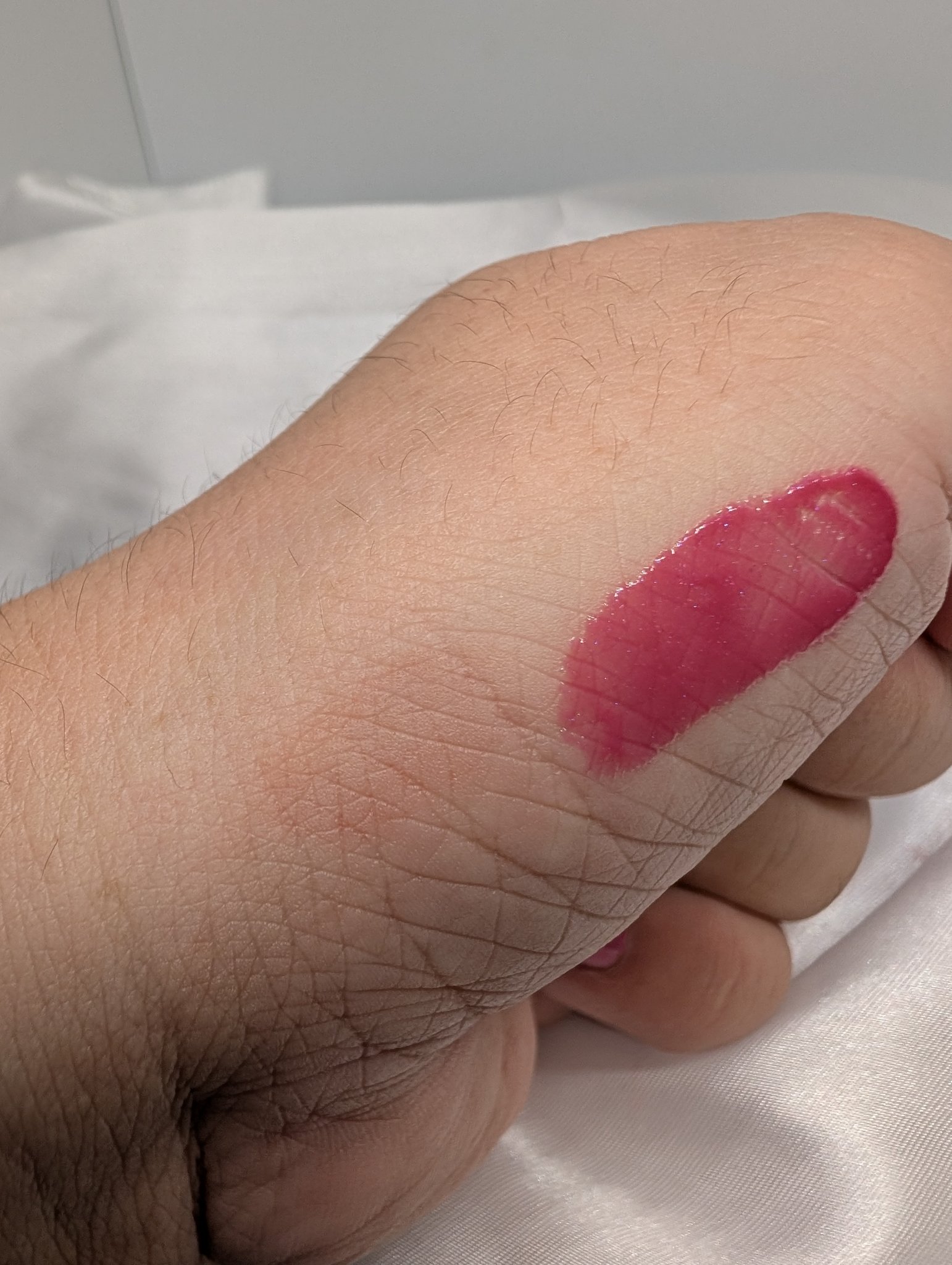 透け感のあるしっかり青みの明るいピンクカラー。 細かいパールが入っていて、ほのかに青く光って本当に可愛い💕 とろけるような質感で、飴でコーティングしたような艶やかな唇になります😻