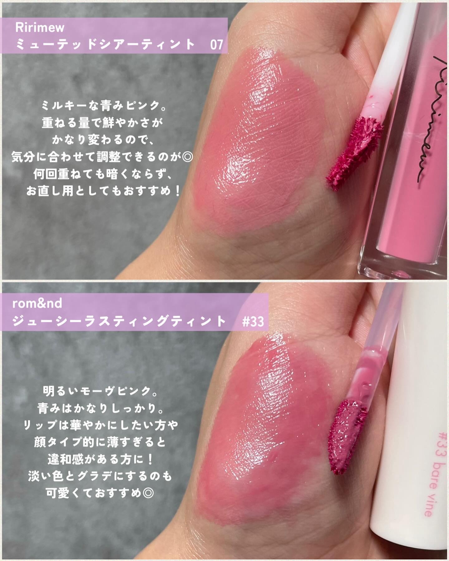ソフトマット、グロウティントどちらも優しい発色で 見た目以上の使いやすさ✨ 全くおもたさがなく、つけていないかのような軽やかな使用感がストレスフリーで最高。 グロウティントはシアーな発色だからパーソナルカラーを外した色でも浮きにくい👌🏻 ぜひ好みの色で選んでみて!