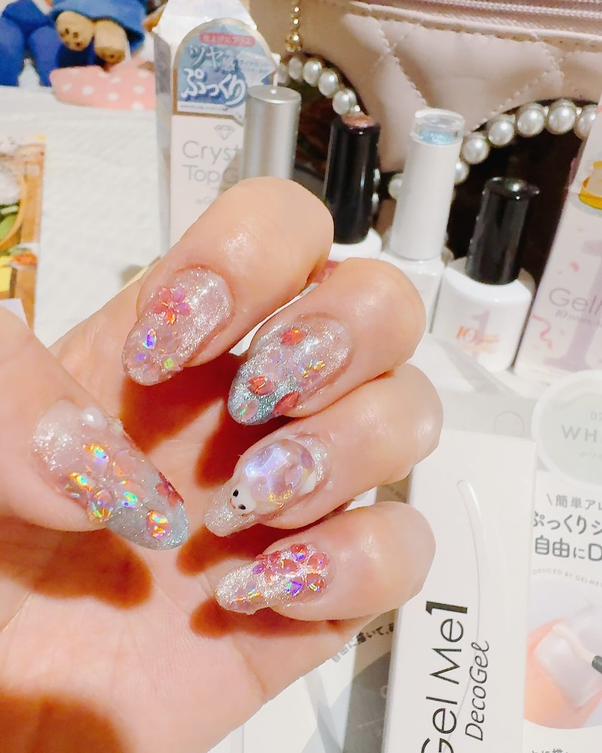 うるうるキラキラのくまちゃん🐻がハート💖を抱っこしてるとっても可愛いネイル💅FINGERSUITのBEARHUGNAILS🐻💖ネイル替えたい!でも時間がない!って時に便利なネイルチップ💅その中でも、フィンガースーツはチップが柔らかくてとっても使いやすい💅光の加減によって、箱に入ってる時よりも、爪につけた時のくまちゃんとハートのキラキラが可愛すぎる💖でも、他のチップは控えめなので、派手すぎず使えます。主婦だし、たくさんご飯作るし、洗い物するし、仕事もするし…なので、普通よりも日持ちはしないけど、シールがあるからまた使えるので大丈夫👌みなさまも是非#pr#fingersuit#フィンガースーツ#ネイルチップ #ロフト展示会 #ロフトのKコスメフェスティバル