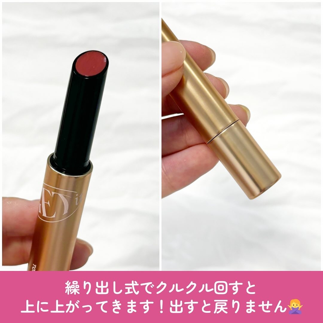 プランパー効果でふっくらしたボリュームリップ演出💋 唇の温度でサーッと溶けるメルティングテクスチャー。 作ったようなニュートラルローズピューレ🌹 ウォームトーン向けです。