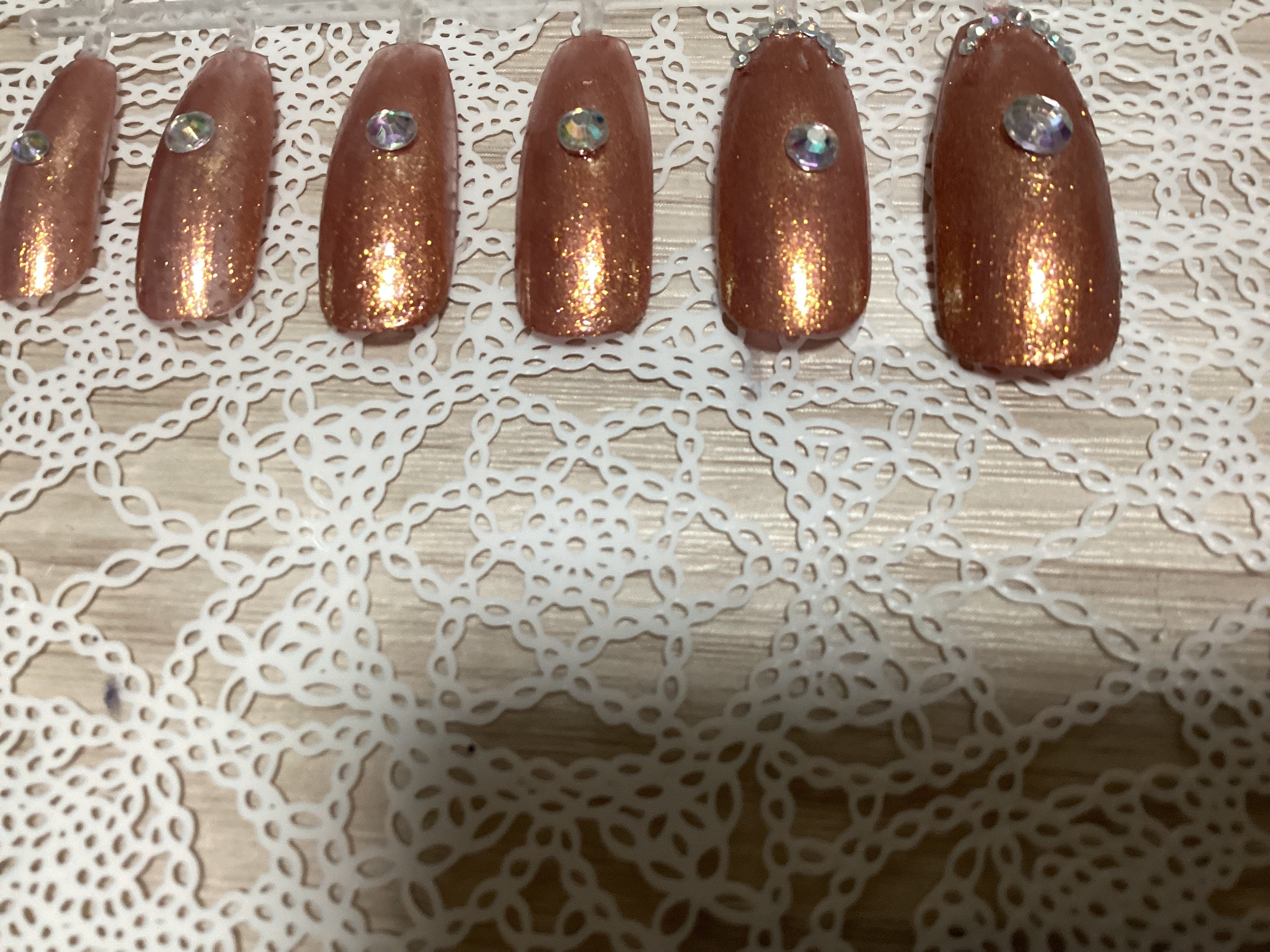 めっちゃ綺麗なブロンズベージュカラー マグネットネイル?てくらいうるうるしてる ゴールドパールで手が綺麗に見える おしゃれで大人っぽくて仕事でも休日でも使えそう ほんと安っぽくなくてジェルネイルくらいツヤある これ一本で最強です