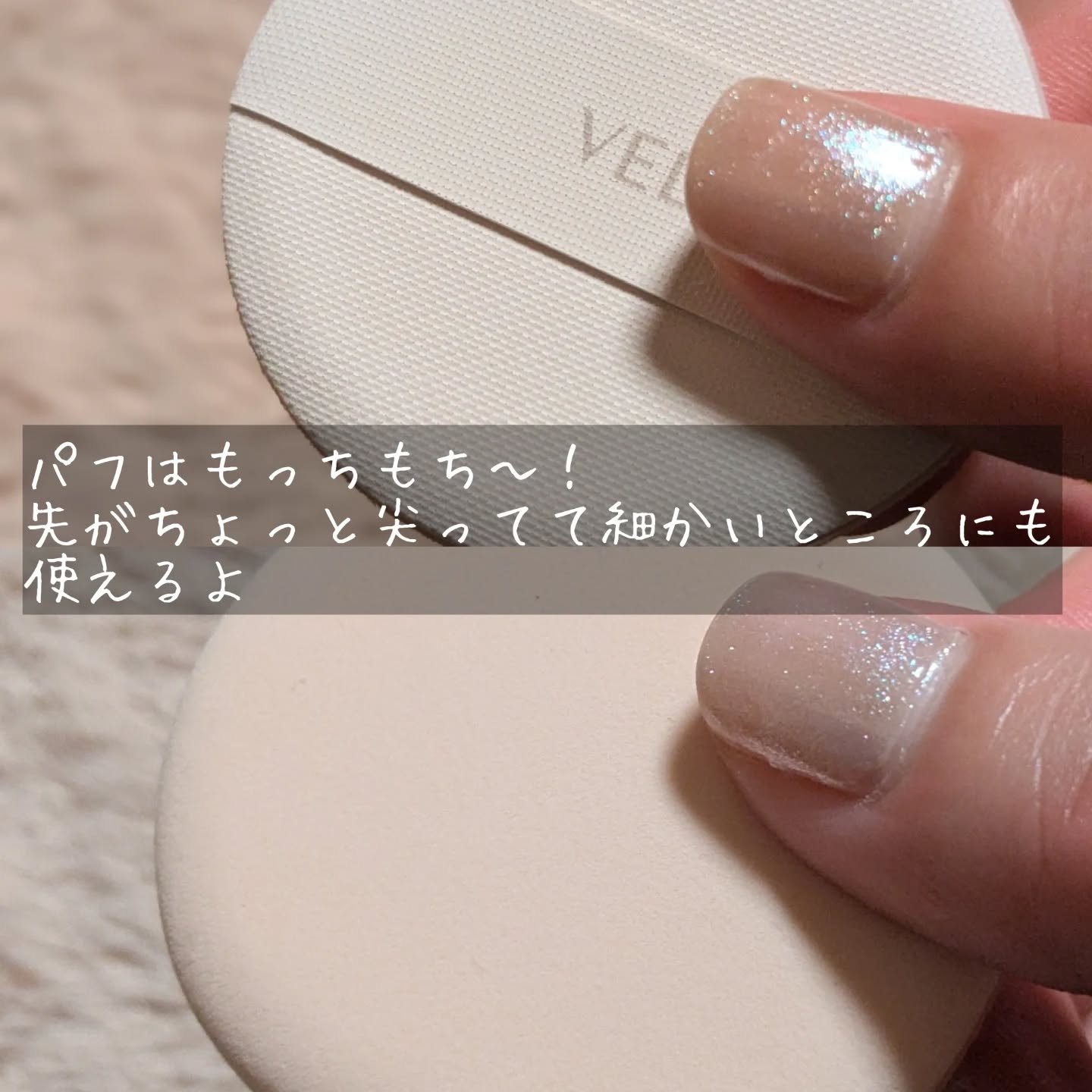 べたつき感なくピタッと密着して クマとか赤みはひと塗りでカバーできるし しずく型のパフは 先端のとがったトコで 目のキワとか小鼻周りとか 細部までしっかり塗れるから好き🎵 もっちりとしたツヤ肌❇️を演出してくれる🎶