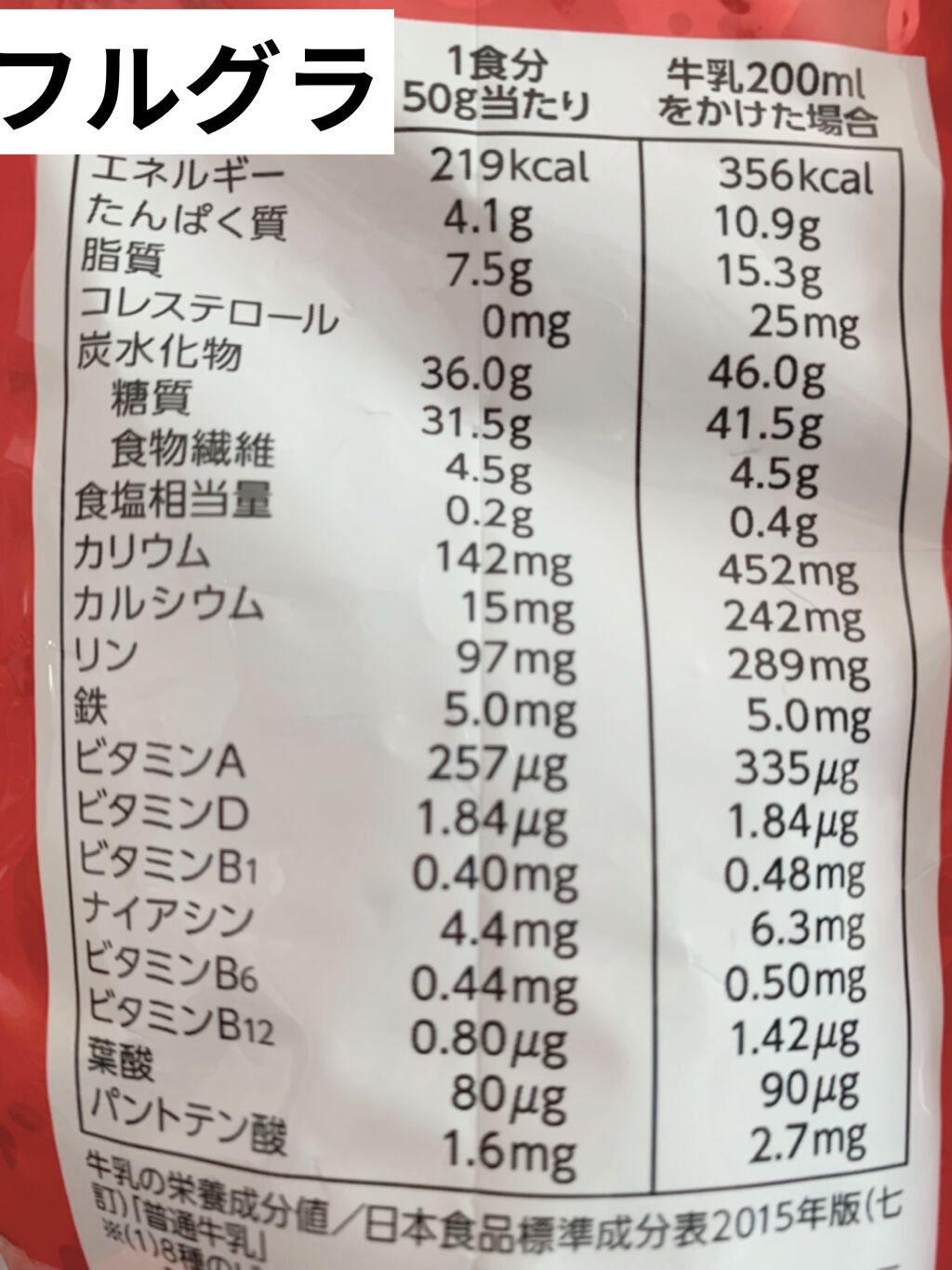 フルグラ大好きです💓💓💓結構高めで今はなかなか買わなくなりましたが、一時期は毎朝フルグラが当たり前でした😍👏✨家族みんなお気に入りです❤️❤️❤️牛乳入れても、もちろん美味しいのですが、そのままボリボリ食べたりして幸せ感じたりしてました🤩🤩🤩...