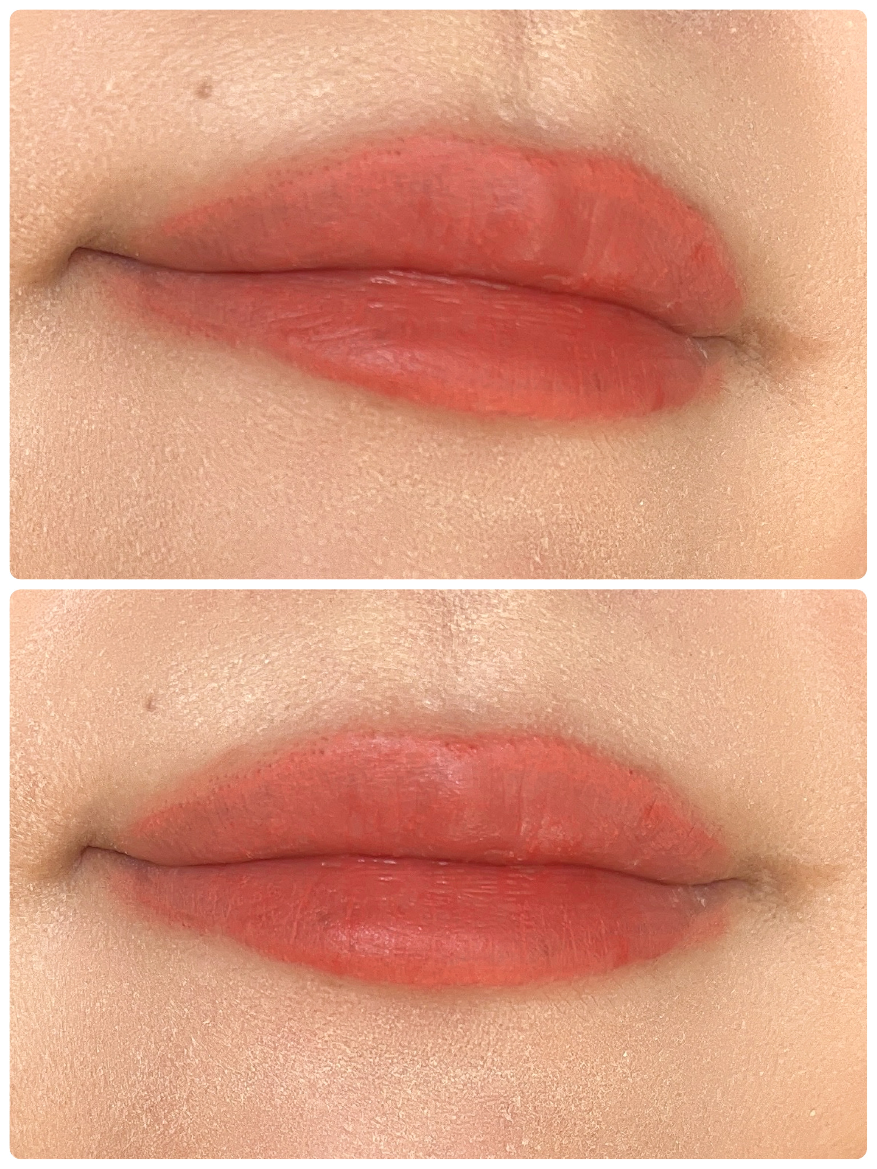 レイヤードするほど鮮明になるカラー感! 半透明の発色で血色よく見せてくれる!高保湿なテクスチャーで乾燥しづらく角質ケアまで! ちゅるんとしたクリアなカラーで、色はほとんどつかず、うるっとした仕上がり。色もちしませんが、このちゅるんと感好き! マットでナチュラルな仕上がり。なめらかに描けるのも良かった!出し過ぎると折れやすいので注意!