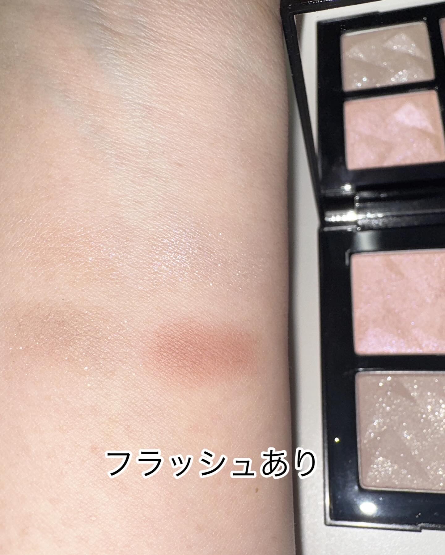 かなり淡めな発色ですが、肌なじみ抜群の4色が溶け込むように 目元の立体感を引き立てるアイシャドウ。 自然な陰影で奥行きのある目元へと導きます♡ 柔らかなモーヴカラーを詰め込んだ クールトーンパレット。 梅雨の雨粒にしっとり艶やかに濡れる情景を フォンダン モーヴに落とし込んだ4色が揃った、 自然な陰影を演出する 儚げな印象のパレットです˚✧ かなり肌なじみの良い淡い発色で、 左上のピンクベージュに関しては 肌に溶け込みまくって どこに塗ったかわからないくらいですが、 まぶたに塗るとほんのりくすみニュアンスを プラスしてくれるので◎。 ラメやパールの煌めきも絡み合って 自然な立体感を演出できて使いやすいです!