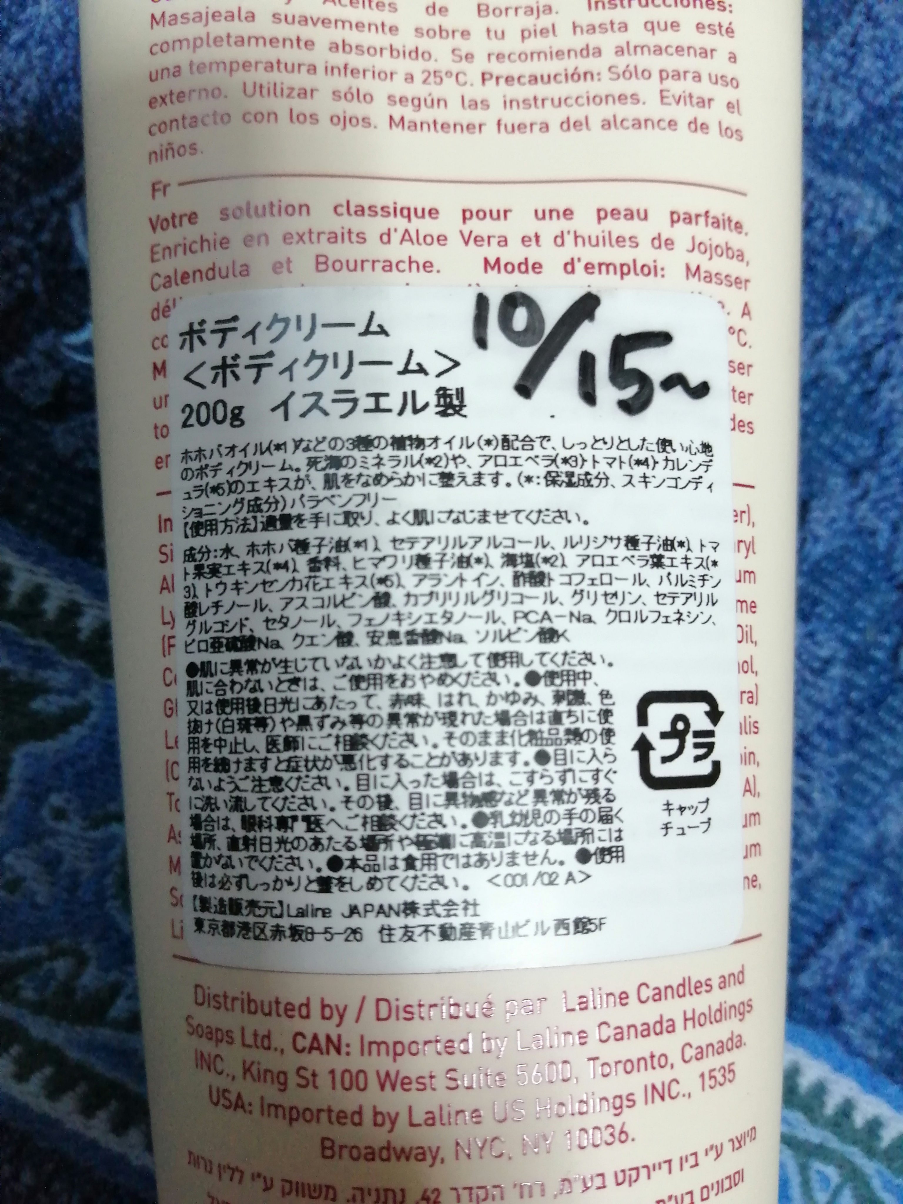 🌺 Laline ワイルドフラワーボディクリーム 🏵️全国の中高年の皆さま、季節柄 急に乾燥を感じてませんか〰️(@_@;)?足のスネがカサカサしてきて、痒い痒い〰️(@_@;)になってる私です!掻いてはダメですね❗痒かったら まずはお薬をぬり、回復したら 予防のボディクリームを塗るように心がけてオリマス(^з^)-☆住まいのある市町村の某駅ビルに「Laline・ラリン」のお店があって、そちらで誕生月割引き(ー20%)で購入できました♥️✼••┈┈••✼••┈┈••✼••┈┈••✼••┈┈••✼Lalineボディクリームワイルドフラワー「ファイブリーブス・ユズ」の香りがお気に入りなんですけど、爽やか系のユズより、こちらは甘めな香りも感じるので 寒い冬場の ほっこり癒しになるかな?と考えて選んでみました♪(´ε`*)【テクスチャ】・ 油っぽいツヤツヤした見た目ではなく、チョイとホイップっぽくも感じるクリーム状。・ お風呂上がりのしっとりしたホカホカ体温が残る肌には するする塗れます。【どんな人におすすめ?】・ 腕や足がカサカサしがちな人・ しわしわしてる薄い肌表面なんかには、丁寧にモミこみましょう!【良いところ】・ 爽やかと甘さのバランスがちょうどいい フローラル系の香り・ 「ファイブリーブス・ユズ」のボディクリームのチューブの蓋と違う造りで、こちらは普通に使いやすいです。「ユズ」の香りの方も、この「ワイルドフラワーボディクリーム」のチューブ蓋の造りにしてほしいな(*^^*)!・ 肌表面をしっかりした被膜でおおってくれる安心感があります。 翌日の入浴でお湯をかけると、お肌がぬるぬるしています。密着したクリームが水をはじいているのでしょう!【イマイチなところ】・ 特にありませんしいて言うなら、人によっては好みの問題で、「香りの段階でのラストノート」っていうのかな? 最後の方の残り香が 人によっては好き嫌いある「葉っぱ系」に感じます ←あくまでも私は(^o^;)「青臭い」と感じる人もいらっしゃるかもしれません ←私は花壇で草花を育てるのが好きなせいか、大丈夫です(*^^*)☆彡🌸🌸🌸🌸🌸🌸☆彡 ちなみに、店員さんが、ボディクリーム全商品の香りを嗅がせてくださり、 大人気だという「サクラ」は、なるほど ほとんどの日本人が好みそうな やさしい香り・大人っぽい香りがして良かったです(*^^*)(購入しなかったけれど(*´艸`))★ いつも長文になってしまって、くどくど読みにくくて申し訳ありませんm(__)m💦 ★#冬に備えるうるおいケア────────────イスラエル製Lalinejapan株式会社東京都港区