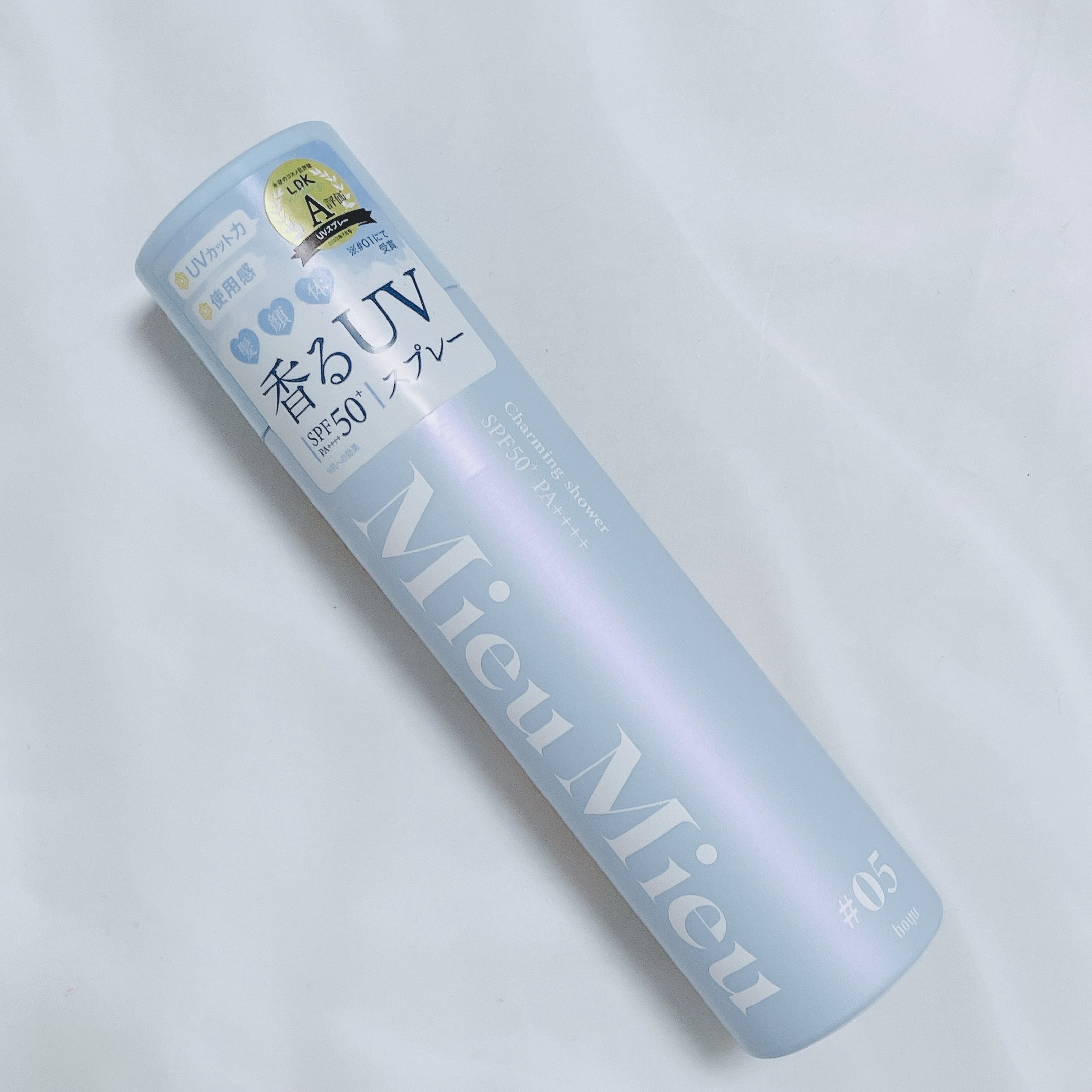 ⑅⑅【MieuMieuチャーミングシャワー#5】これほんと良い香り♡髪の毛の紫外線対策に今年は力を入れたいので取り入れたUVスプレーです!紫外線によるダメージって気になりますよね?ꪔ̤̫SPF50+・PA++++UVカット×フレグランス×髪...