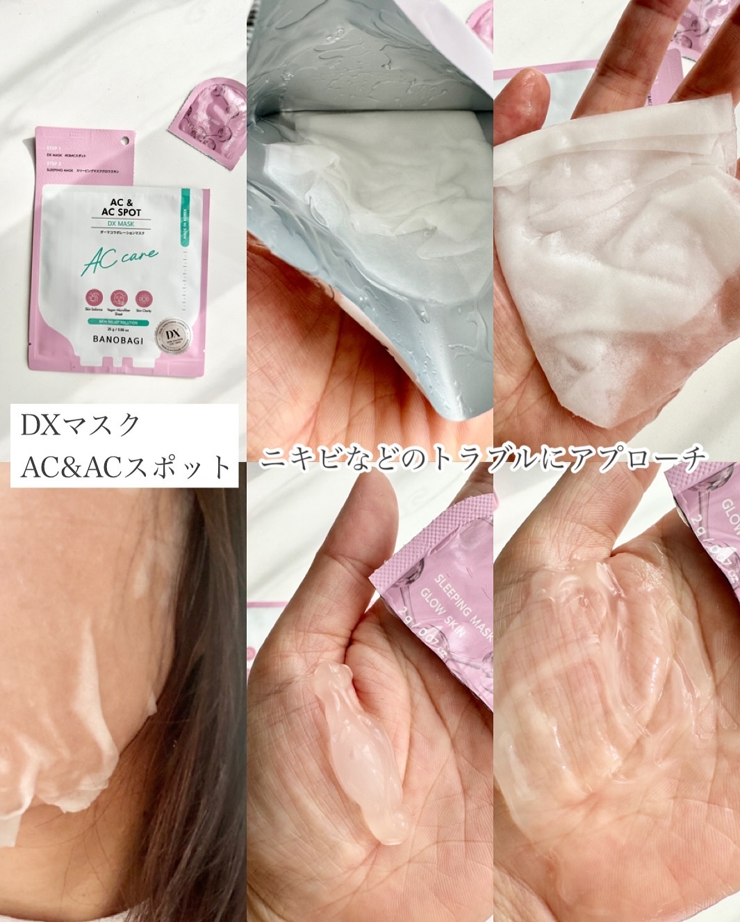 このシリーズは好きな気がする〜〜🥹💕BANOBAGIのDXマスク2種類目!■BANOBAGIDXマスク(AC&ACスポット)緑に続いて2種類目を開封!フェイスマスクとスリーピングマスクがセットになっていて、今回はポツントラブル対策用。透明でと...