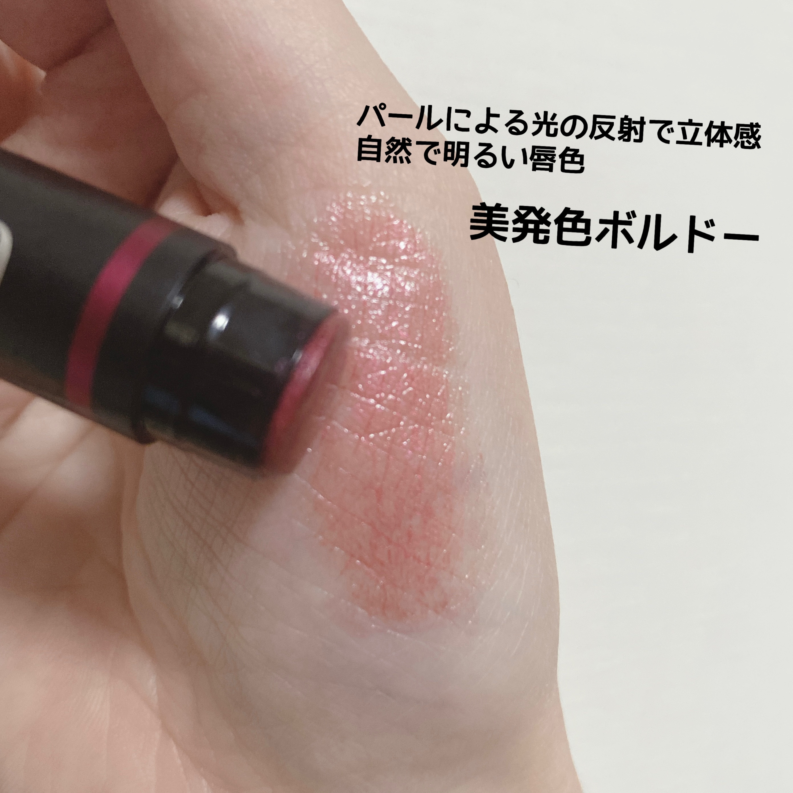 パールによる光の反射で立体感のある仕上がり。セラミドケア*でうるおう使用感🫧 新色の美発色ボルドーはほんのりダークな仕上がりで繊細なパールがしっかり入っています。 使用感はとても良くてベタつきも少なくて気軽にぬれます✨