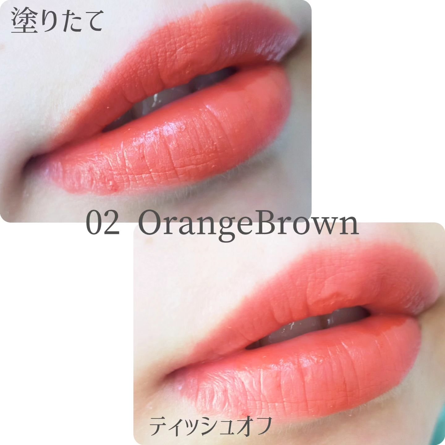 リップオイル配合でティントなのに乾燥しにくく、まるでシルクのようななめらかな塗り心地で発色良し! セミマットのような仕上がりでした💋 わたしは02がお気に入りです☺️🩷🧡