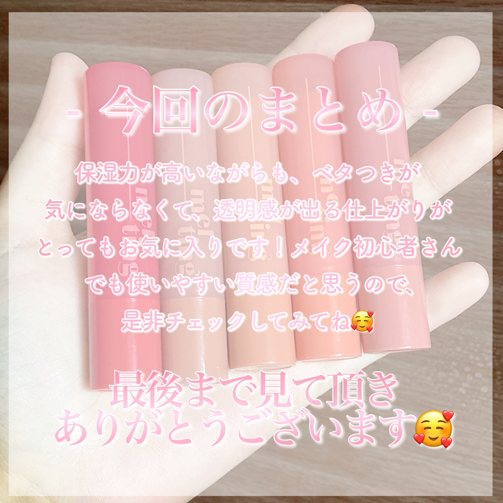 ˗ˏˋmylipstickcollectionˎˊ˗coralbeige&pinkbeige🪸🦙🎀✨〖ABOUTME!〗𝑺𝑬𝑨𝑺𝑶𝑵𝑨𝑳𝑪𝑶𝑳𝑶𝑼𝑹:1𝘴𝘵𝘴𝘰𝘧𝘵(𝘮𝘶𝘵𝘦𝘥)𝘢𝘶𝘵𝘶𝘮𝘯/2𝘯𝘥𝘴𝘰𝘧𝘵(𝘮𝘶𝘵𝘦𝘥)𝘴𝘶𝘮𝘮𝘦𝘳𝑺𝑲𝑰𝑵𝑻𝑶𝑵𝑬:韓国基準で25号から27号の地黒、ニュートラル✴︎rom&ndGlastingmeltingbalm[01coconude]♥♥♥♡♡厚みがあってツヤ感は他にない美しさだけど、重たくベタつく使用感があまり好きじゃないです。✴︎LUMMIRMeltingfitshinebalm[8PM#05NUR]♥♥♥♥♥rom&ndよりもこっちのほうが着け心地がサラッと軽くて好き。厚みはないのにガラスでコーティングしたようなツヤが出て綺麗です✨︎ETUDEGingersugarmeltingbalm[04peanutsbutter]♥♥♥♥♥[01figbeige]♥♥♥♥♡色付きリップクリーム感覚で使えてお気に入り。私はピーナッツバターというカラーが1番気に入っていて、よく使っています!︎TOCOBOJuicyBerryPlumpingLipOil[14peachnectar+13chocoberry]♥♥♥♥♥これは13と14の2色を混ぜたものです。ガラスの膜のようなツヤッツヤ✨の仕上がりでジューシーな唇になります💋✴︎RIMMELLastingfinishoilmoisttintS[S007]♥♥♡♡♡もっとベージュ系だと思って買ったんだけど、ベースカラーが薄すぎてただの赤みピンクのティントでした…😢思ってたのと違ったけど、スッピン時に使うのに丁度良いカラー。✴︎periperainkvelvet"nude-brew"[25cinnamonnude]♥♡♡♡♡公式写真ではもっと落ち着いた赤みブラウンに見えたんだけど"nude-brew”シリーズのなかではこれが1番彩度高めな気がする。秋夏ミュートの私には明るすぎて似合わなかったです💦✄------------------キリトリ------------------✄#リップ#リップティント#リップコレクション#リップスウォッチ#ソフトオータム#ソフトサマー#秋ミュート#ヌードリップ#韓国コスメ#プチプラコスメ#プチプラ#ティント#ティントリップ✄------------------キリトリ------------------✄