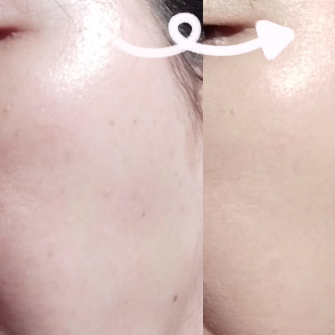 肌に塗布すると、まるで補正したみたいに、毛穴や凹凸をなめらかにカバーしてくれて、密着されてる感じがする👌 厚み感もなくて、ナチュラルに仕上がるよ😱 サラッとしたマットな仕上がりに👏