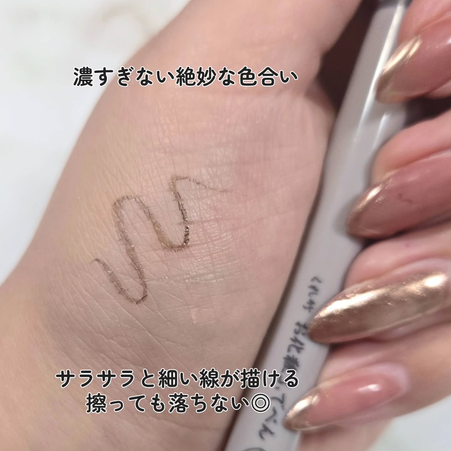 色も細さもすごく使いやすいんです。初めて使ってからもう手放せなくなり眉を描くのが楽しくなった商品だったのですがリピートして、購入したものがかすれるのが早くてびっくり。無くなるのが早いのか個体差かまたリピートしてみます。