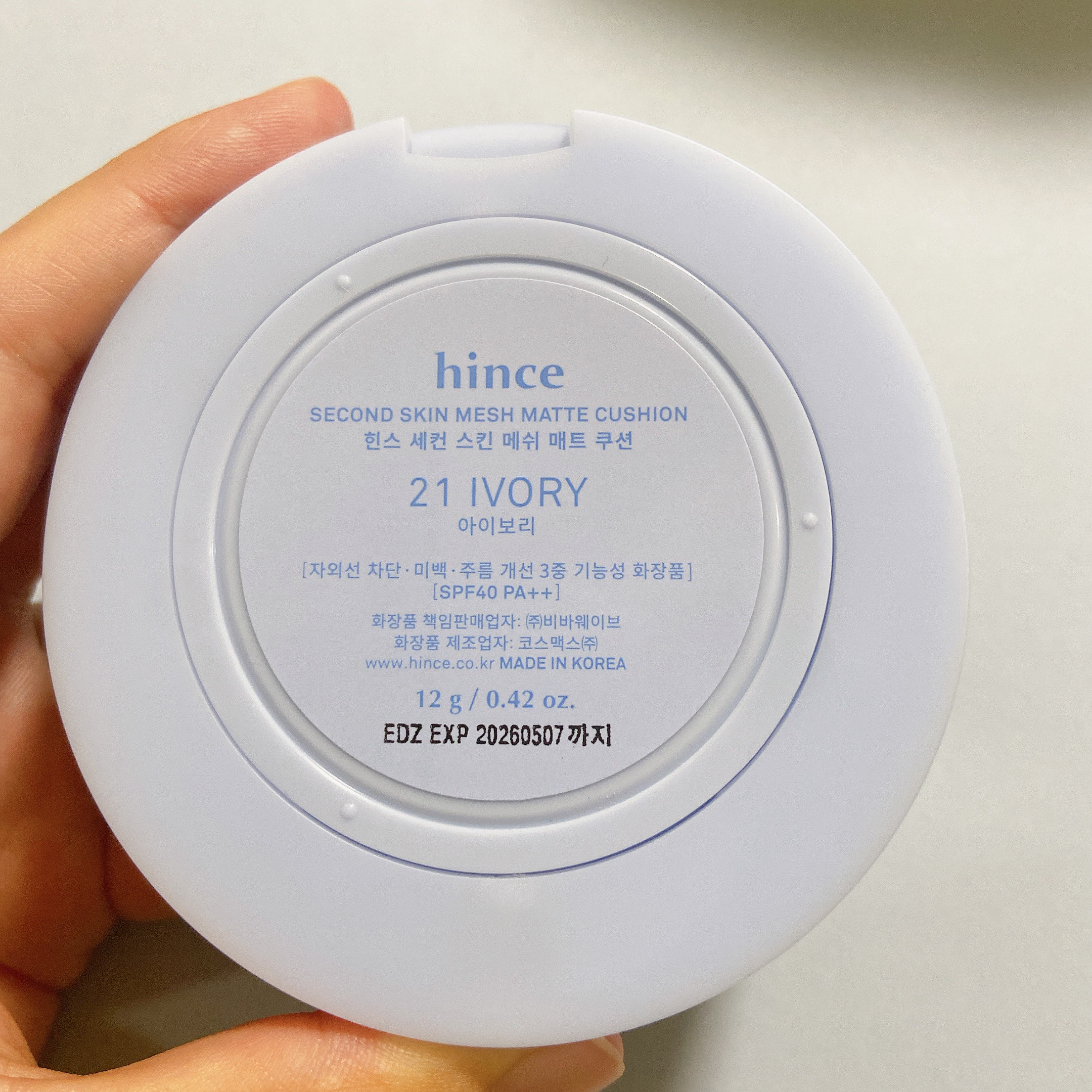 hinceセカンドスキンメッシュマットクッション21アイボリー(BLUEDIVE)💙2024年6月Q0010メガ割時の限定セット hinceBlueDiveLimitedEditionSet に入っていた商品の一つです。 セットについては以前レビュー済み。※ブルーダイブエディションは2024年夏限定のパッケージのようですが、既存のブルークッションのリパッケージエディションで内容物は同じそうです。・メッシュフィルターを通してブレンドされる 微粒子クッションファンデーション。・何度重ねても薄くなめらかに肌に密着し、 シルクライク肌を演出します。・マットな仕上がりでありながら、 肌のうるおいをキープし、 ほのかにツヤめくシルキーな質感を実現。・SPF40,PA++・ファンデのカラバリは4種類で、 私が選んだのは(21IVORYアイボリー) 自然なアイボリーベージュ・嬉しい鏡&パフ付きhinceのファンデもカバー力が高く崩れにくいと評判だったので、使うの楽しみだったんですが、評判通りの自然なカバー力と崩れにくさで、それでちて乾燥もしにくく使い心地良かったです🥰こちらはマットタイプなんですが、ほどよいツヤ感もあるし、ツヤ感がもっと欲しければ同じくhinceのスティックバーム型のハイライトを使うといいかなと思いました❣️相性もバッチリ👌