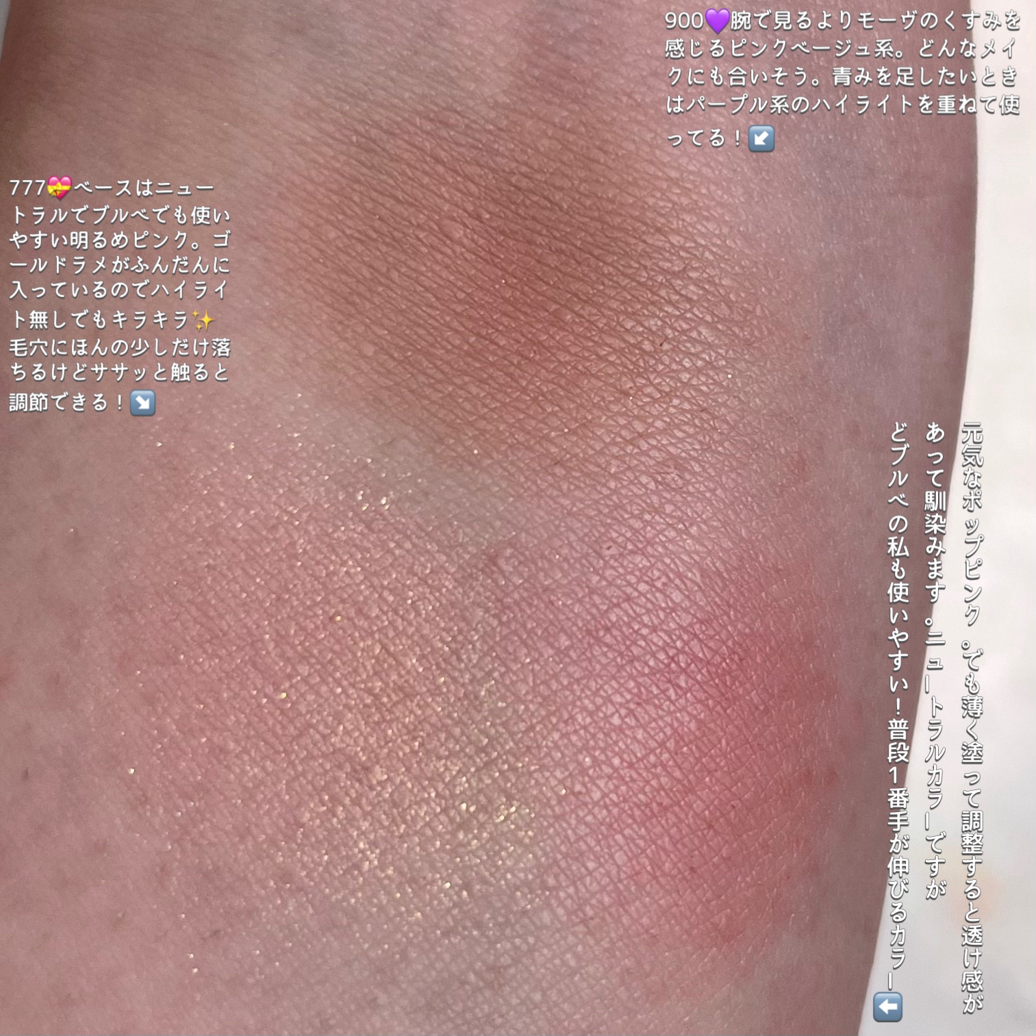 色選びの参考に🌟ブルベ夏が悩んで選んだカラーたち/NARSのブラッシュがリニューアルしてカラバリもとても豊富なのでとっても悩みました!購入したのは777,778,900の3色です❗️店頭で全色スウォッチして気に入った&気になったカラーもレビューします🩷☝️近々、追加購入の予定♡【質感】 全色、透け感があり、相当重ねないと濃くならないので、失敗しにくい。ハイライトとの相乗効果でよりチークの良さを活かせるカラーも多い✨777ORGASMにはゴールドラメがふんだんに入っていて腕に出すとゴールドラメしか乗ってない?!ってなりますが、頬の上ではきちんと優しいピンクがメインで、ツヤ出しにゴールドラメが乗る感じ。ブルベですが使いにくさは無いカラーです。【カラー】920 SEXAPPEALどこに行っても売り切れが多い、大人気の920番!個人的に少し前調べていた通りの発色で、私にはピンクというよりベージュのチークに感じました。元の肌に赤みが強いからかも。色白さんには優しいピンクで儚げになりそう!888 DOLCEVITA人気色のようで、私が店頭に行った時は完売してました。ベースはパープルをほんのり感じる深みレッド。ほのかなシルバーラメのおかげで抜け感が出ます。(公式情報ではマットらしいけど、少しシルバーがキラッと見えた)赤み顔の私には赤すぎたので購入はしませんでした🥲950 THRILLたくさんあるカラバリの中でもザ・青みカラーで気になりましたが、質感は流石デパコスのほわほわ密着でしたが、色でいうと韓国コスメによくあるカラーだと思い、こちらも購入は見送り😭776 ORGASMXベースのカラーは778のORGASMEDGEによく似ていました!違いとしてはピンクや赤系のラメがキランキランでした✨778を先に買っていたので買わなかったけど無くなったらら購入したい❣️237DEEPTHROAT事前情報ではあまり気になってなかったのですが、テスターを触ってNO.1のお気に入り色になりました!ほのかなゴールドのパールが入っていて、777ORGASMほどのラメ量では無いです。778ORGASMEDGEにベースの色が少し似てるけど、より淡くて桜色みたいな馴染み良いピンク🌸これは絶対、お金貯めて買う予定!どの色も買って後悔ないカラーだし、混ぜたりハイライトやニュアンスチェンジャーで好みの色に化けることもしやすい!透け感と粉質のしっとり感に夢中になりました🥰#ビジュ優勝コスメ#透明感爆上げメイク