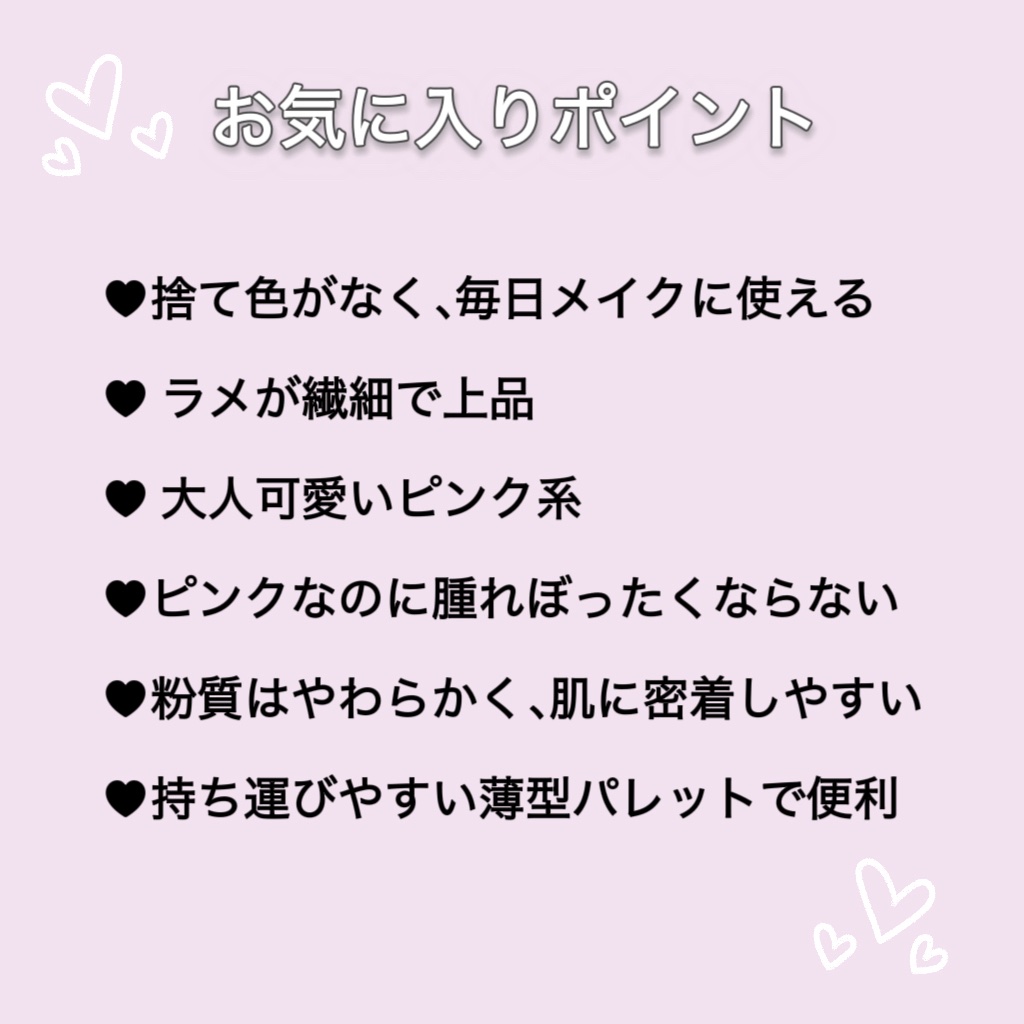 | アイシャドウパレットランキング第4位 | 粉質もしっとり高密着でラメがキラキラ大粒めで可愛い♡ | 詳細を見る | |