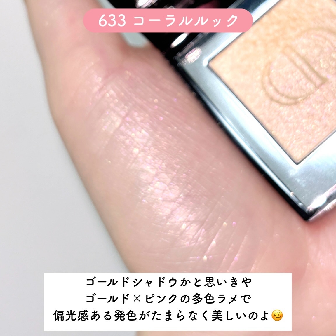 DIORの単色シャドウが美しすぎて衝撃🫨! 中でも633がすごくて… パレットだけみると ゴールド?と思いきや ゴールド×ピンクの多色ラメで 超可愛いくて絶句よ🥴!! お買い物中毒なアラサー女子が あなたのQOL爆上げさせます🫡🤍