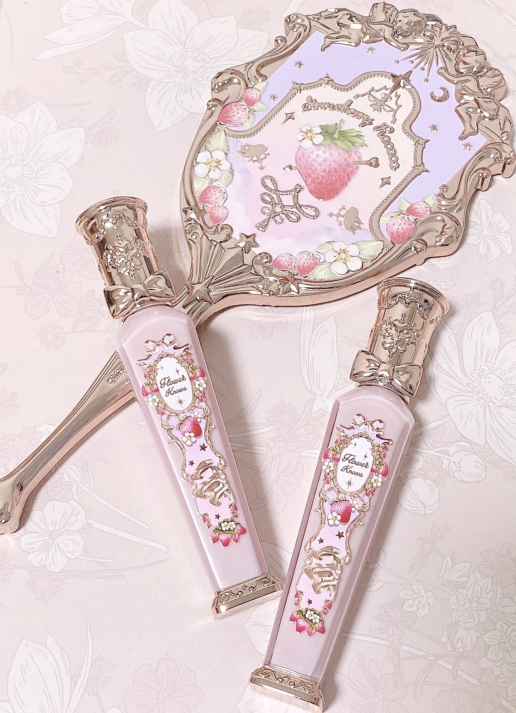 甘めのピンクパケが可愛いすぎる🍓FlowerKnowsの過去作品「ストロベリーロココシリーズ」のヴァイオレットセットを以前購入した時のものです💜໒꒱𓈒𓏸この時、紫のパケとピンクパケが一緒に入ってたんですよね🐰ྀིTheお姫様コスメすぎて大好き...