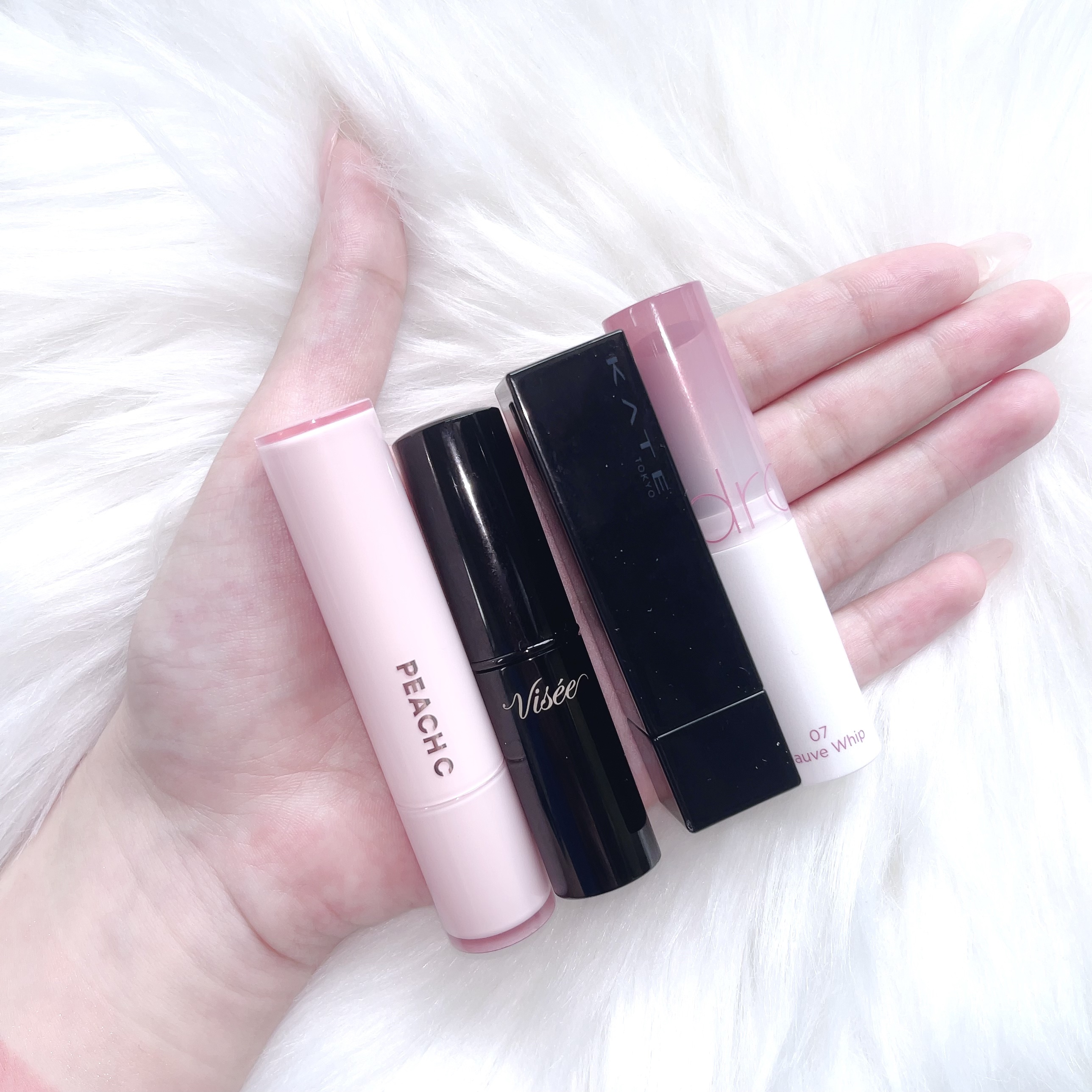 色持ち重視なら、ViséeやKATEがおすすめ✨ ツヤ感重視なら、Peach Cやrom&ndがおすすめ! 個人的にこの中でのイチオシはPeach C👶🏻💫 色持ちはしないけど赤ちゃんみたいなちゅるちゅる唇になれます🎶 イエベ界のうさぎ舌リップって感じです🐰