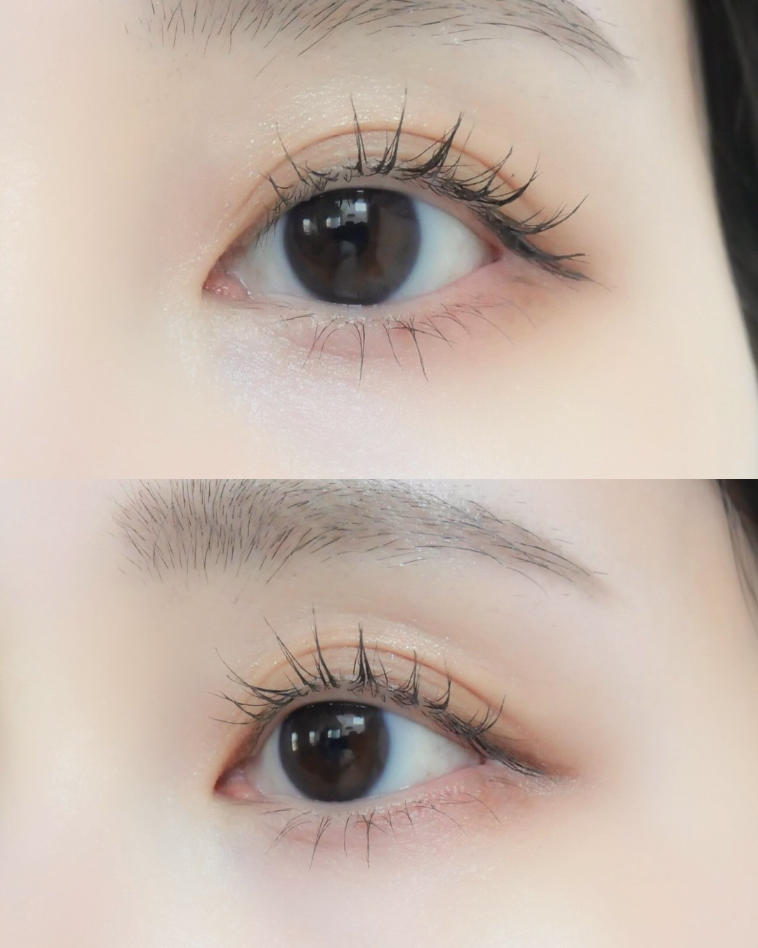 このアッシュの色味が良かった❣️ 黒より軽くて、でも存在感があって✨️ ダマにならない訳では無いけど、ちゃんと使えばダマになりにくいと思う( ˊᵕˋ )💭 一重なのに、まつ毛がバチっと上がるおかげで、二重線が出来るよ😍💖