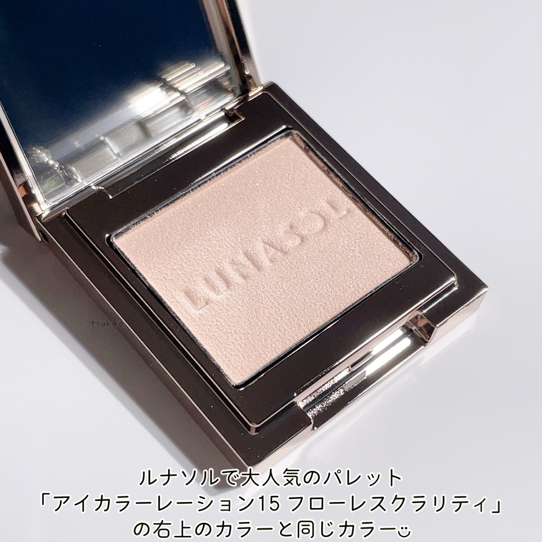 LUNASOLの単色シャドウが美しい✨ 01も02も色味はほとんど一緒で、01の方がパールが目立って華やかな印象でした✨️ しっとりとした粉質と上品な煌めきに感動してずっとそのベースカラー部分だけのアイテムが欲しいと思っていました! 粉質はしっとりとしていてまぶたに密着、微細なパールがとても綺麗でどんなメイクにも合わせやすいです!