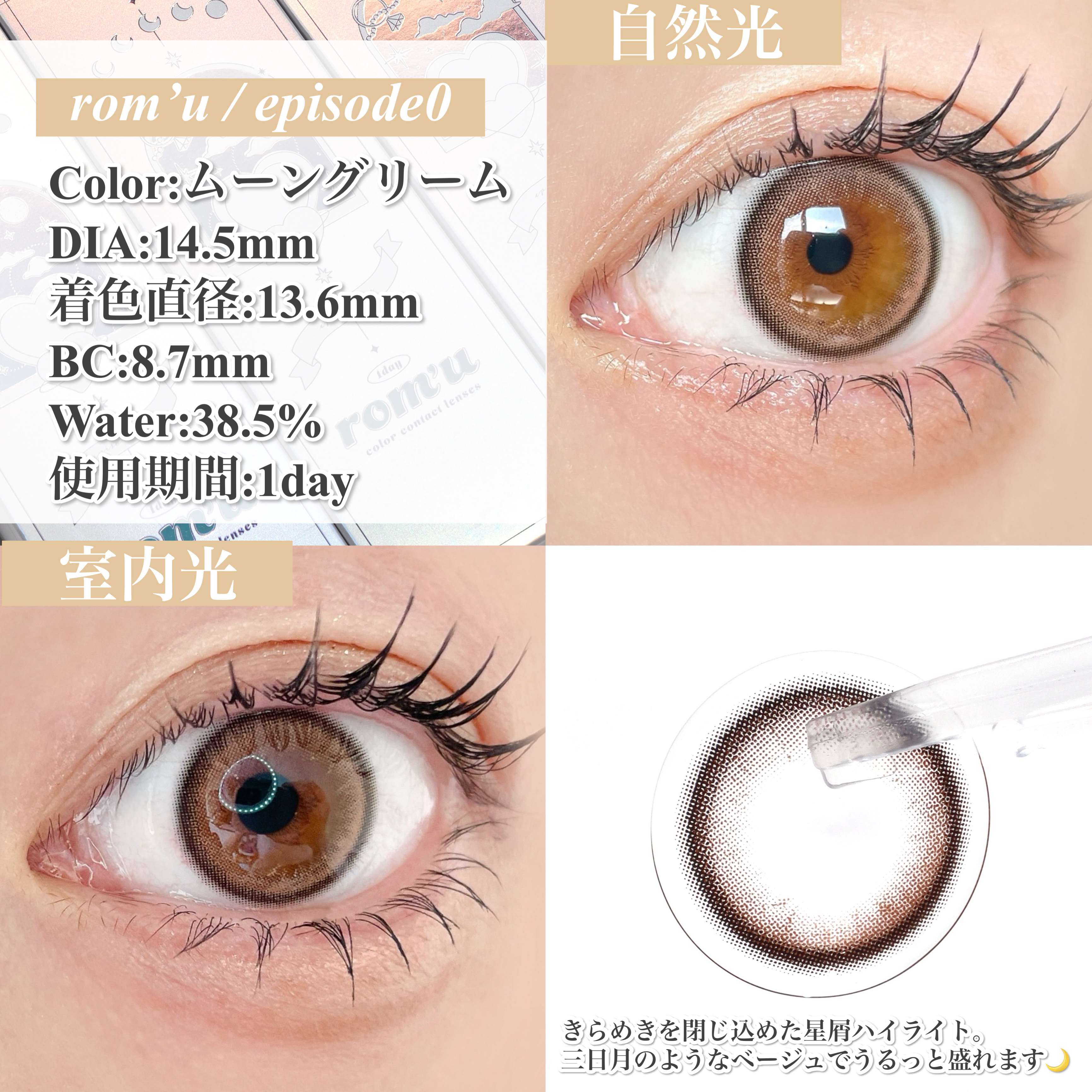 IVEREIちゃん新ブランドミューズ💘/𝒓𝒐𝒎’𝒖𝒆𝒑𝒊𝒔𝒐𝒅𝒆0新色3色レビュー大好きなIVEのレイちゃんが大好きなカラコンブランドrom’uの新ミューズに就任♡今回はepisode0の新色3色と既存色3色の形6色をレビューしていきたいと思います🪞┈┈┈┈┈┈┈┈┈┈┈┈┈┈┈┈┈┈┈┈𝒓𝒐𝒎’𝒖ロミュDIA:14.2mm/14.5mm着色直径:13.2~13.7mmBC:8.7mmWater:38.5%使用期間:1day𝒆𝒑𝒊𝒔𝒐𝒅𝒆0「星屑きらめく、瞳に宿る小さな魔法」DIA14.5mm/G.DIA13.6mmlovegleamラブグリームきらめきを閉じ込めた星屑ハイライト。ふんわり溶け込むピンクブラウンで甘い瞳に🎀moongleamムーングリームきらめきを閉じ込めた星屑ハイライト。三日月のようなベージュでうるっと盛れます🌙dearmellowディアメロウなめらかなダークグレーとぼかしリングで吸い込まれるようなうるみEyeに🐈⬛𝒆𝒑𝒊𝒔𝒐𝒅𝒆01「午前0時のときめく視線」DIA14.5mm/G.DIA13.7mmgraytaupeグレイトープ透明感のある細フチデザインと深みのあるパープルグレーで儚げな目元に🦋𝒆𝒑𝒊𝒔𝒐𝒅𝒆02「白昼夢にみた淡い記憶」DIA14.2mm/G.DIA13.2mm淡いピンクブラウンと細フチの組み合わせでうるっと上品な瞳を演出🍑𝒆𝒑𝒊𝒔𝒐𝒅𝒆03「センチメンタルな愛と欲望」DIA14.5mm/G.DIA13.7mm淡いアッシュベージュと細フチリングできゅるんとした瞳に💫┈┈┈┈┈┈┈┈┈┈┈┈┈┈┈┈┈┈┈┈今回はrom'uの新色3色と既存色3色の計6色をレビューしました!特にepisode0の新色、ラブグリームの細かい星屑ハイライトデザインと甘いピンクカラーがお気に入り♡着色直径13.7mmと大きめでしっかり盛れるところも◎新色もメガ割対象でお得に購入できるのでチェックしてみてください🐰#romu#ロミュ#IVEREIミューズ#romuシグネチャーデザイン#きらめく#星屑ハイライトレンズ#PR#メガ割#Qoo10メガ割#Qoo10#カラコン#カラコンレポ#カラコン着画